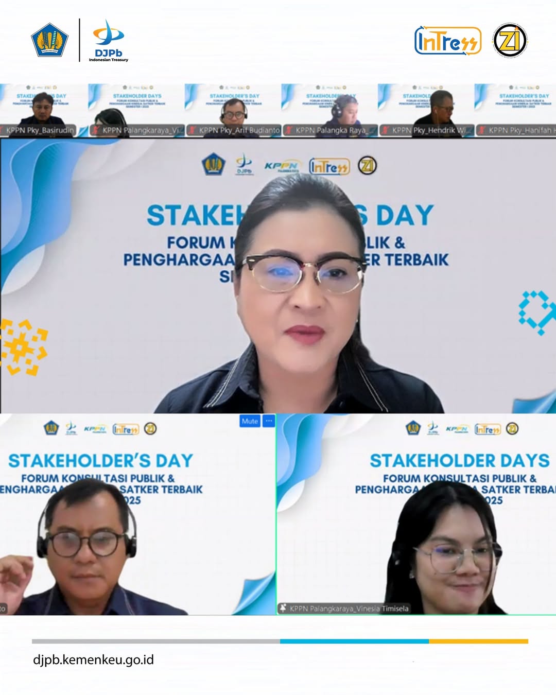 Dalam rangka mewujudkan tata kelola pemerintahan yang terbuka, partisipatif, dan bertanggung jawab, KPPN Palangkaraya menyelenggarakan Kegiatan Stakeholder Day dan Forum Konsultasi Publik pada hari Rabu, 24 September 2025. Kegiatan ini menjadi wadah bagi KPPN Palangkaraya untuk mempererat hubungan kemitraan dengan para pemangku kepentingan sekaligus memperkuat komitmen terhadap transparansi dan akuntabilitas dalam pengelolaan keuangan negara.
