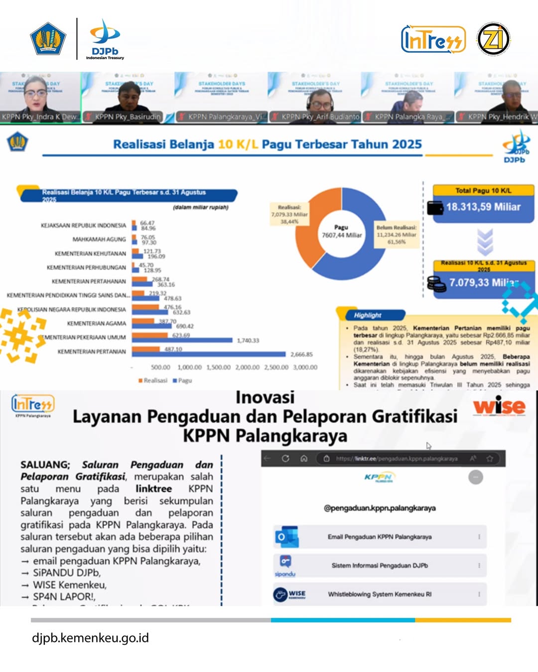 Acara ini memiliki dua fokus utama, yakni memberikan apresiasi kepada para stakeholders KPPN Palangkaraya atas kontribusi dan sinergi yang telah terjalin, serta memaparkan perkembangan penyerapan APBN di wilayah kerja KPPN Palangkaraya. Selain itu, turut disosialisasikan Layanan Pengaduan dan Pelaporan Gratifikasi KPPN Palangkaraya, yang menjadi kanal resmi bagi masyarakat dan mitra kerja untuk menyampaikan aspirasi, saran, maupun pengawasan terhadap kualitas layanan publik.