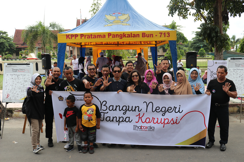 Peringatan Hakordia kali ini diisi dengan berbagai kegiatan, mulai dari flash mob, pembagian pin, gelang, bunga, hingga penandatanganan komitmen bersama melawan korupsi oleh masyarakat, Kojib si lebah maskot Direktorat Jenderal Pajak pun ikut memeriahkan acara hari itu. Turut hadir pula Kepala KPPN Pangkalan Bun Ibu Astriyani dan Kepala KPP Pratama Pangkalan Bun Ibu Artiek. Dalam acara ini juga para pegawai Kementerian Keuangan mengajak masyarakat untuk menyampaikan pendapat tentang Kementerian Keuangan saat ini dan harapan kepada Kementerian Keuangan pada masa yang akan datang. Kegiatan ini diharapkan mampu menyampaikan pesan kepada masyarakat bahwa Kementerian Keuangan siap dan akan terus berupaya untuk membangun negeri tanpa kosupsi.