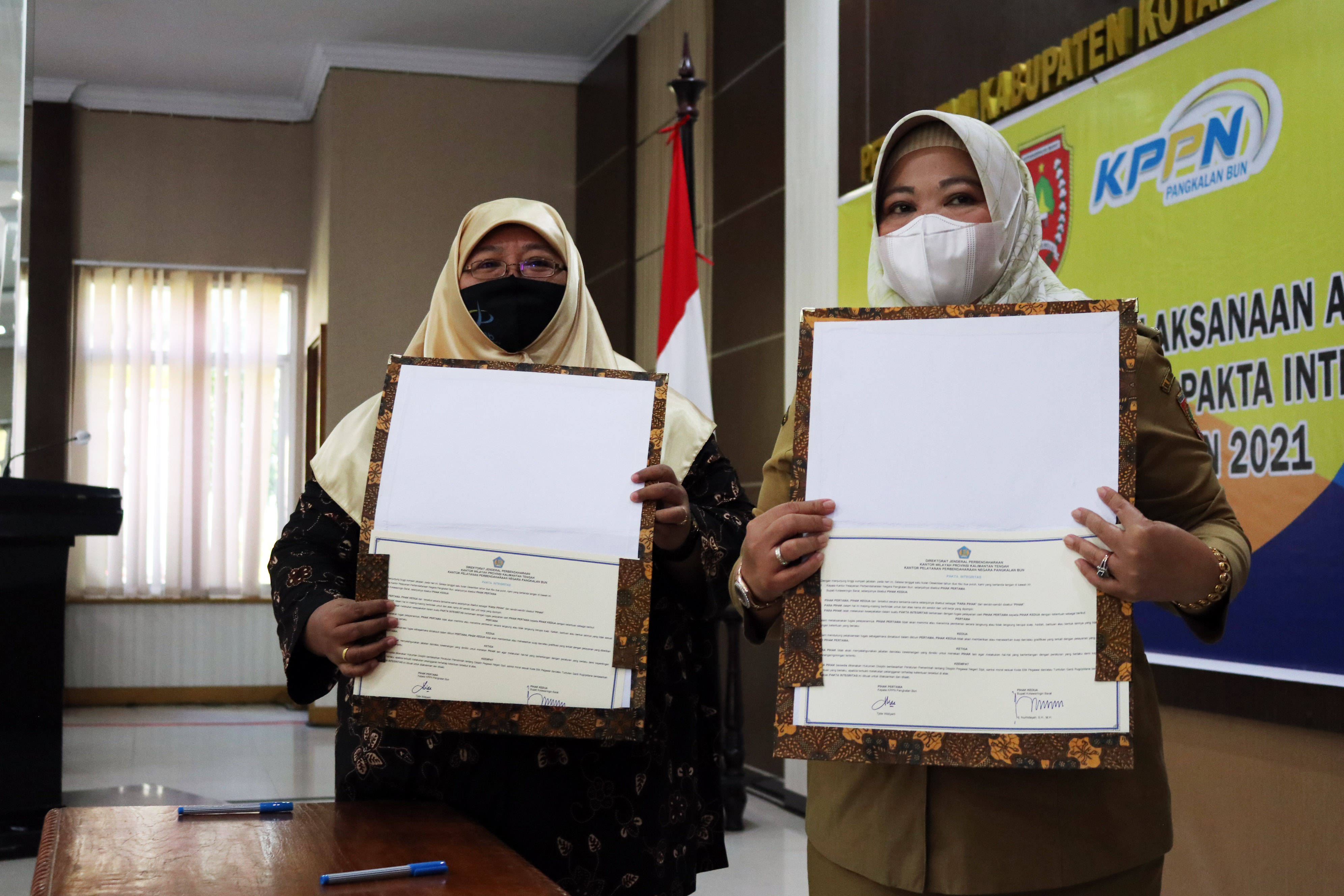 Selain penyerahan DIPA juga dilakukan penandatanganan pakta integritas tahun 2021 oleh Bupati Kotawaringin Barat Hj Nurhidayah bersama KPPN Pangkalan Bun Tjide Widiyarti.