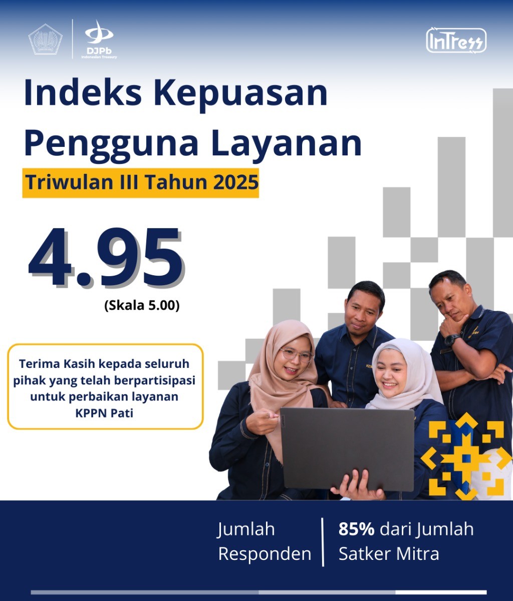 KPPN Pati menyampaikan apresiasi kepada seluruh pengguna layanan atas partisipasi dalam Survei Kepuasan Pengguna Layanan Triwulan III Tahun 2025.