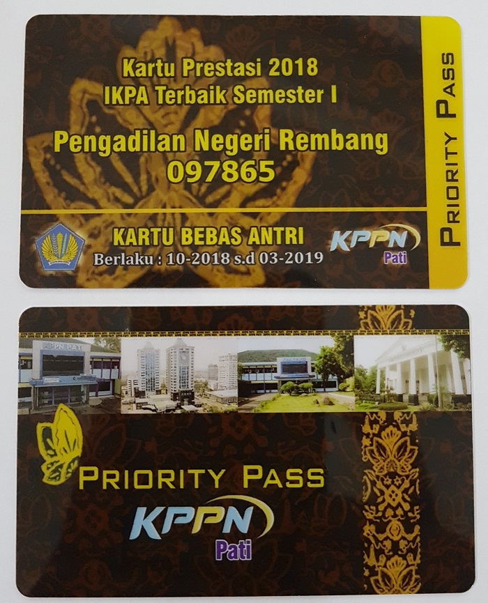 Sebagai salah satu bentuk penghargaan yang diberikan kepada Satuan Kerja (satker) mitra kerjanya, KPPN Pati memberikan Kartu Prestasi 2018, yaitu berupa layanan bebas antrian selama jam pelayanan KPPN Pati. Hal tersebut diharapkan dapat memacu satker mitra kerja KPPN untuk berlomba-lomba mengoptimalkan kinerja pelaksanaan anggaran masing-masing.