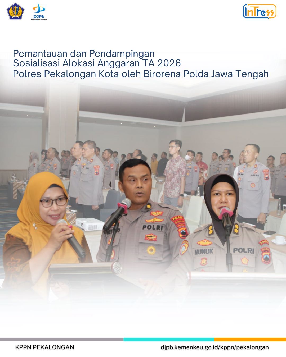 KPPN Pekalongan menerima undangan untuk turut serta mendampingi kegiatan yang diselenggarakan oleh Resor Pekalongan Kota dalam rangka Pemantauan dan Pendampingan Sosialisasi Alokasi Anggaran TA 2026 Polres Pekalongan Kota oleh Birorena Polda Jawa Tengah. Kehadiran KPPN Pekalongan dalam kegiatan ini menjadi wujud dukungan terhadap upaya peningkatan kualitas perencanaan dan pengelolaan anggaran di lingkungan Polri, khususnya pada satuan kerja di wilayah Pekalongan.