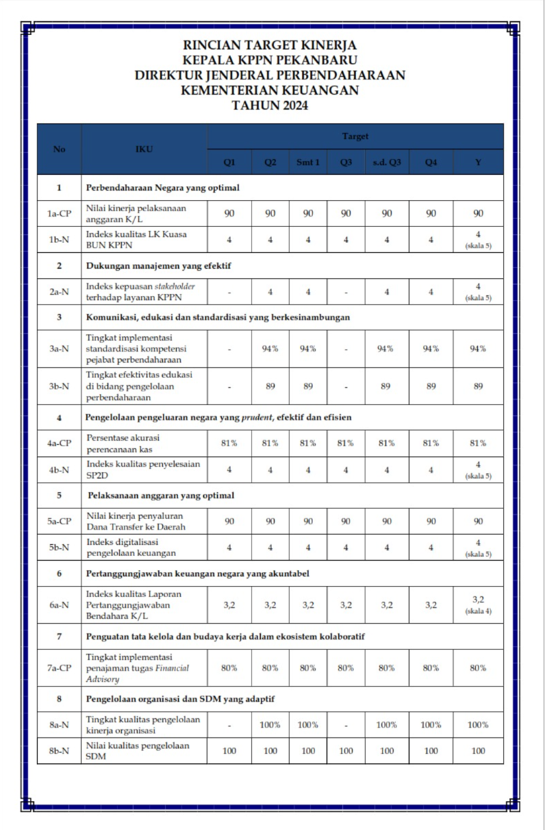 Rincian Target Kinerja Kepala KPPN Pekanbaru 2024 |