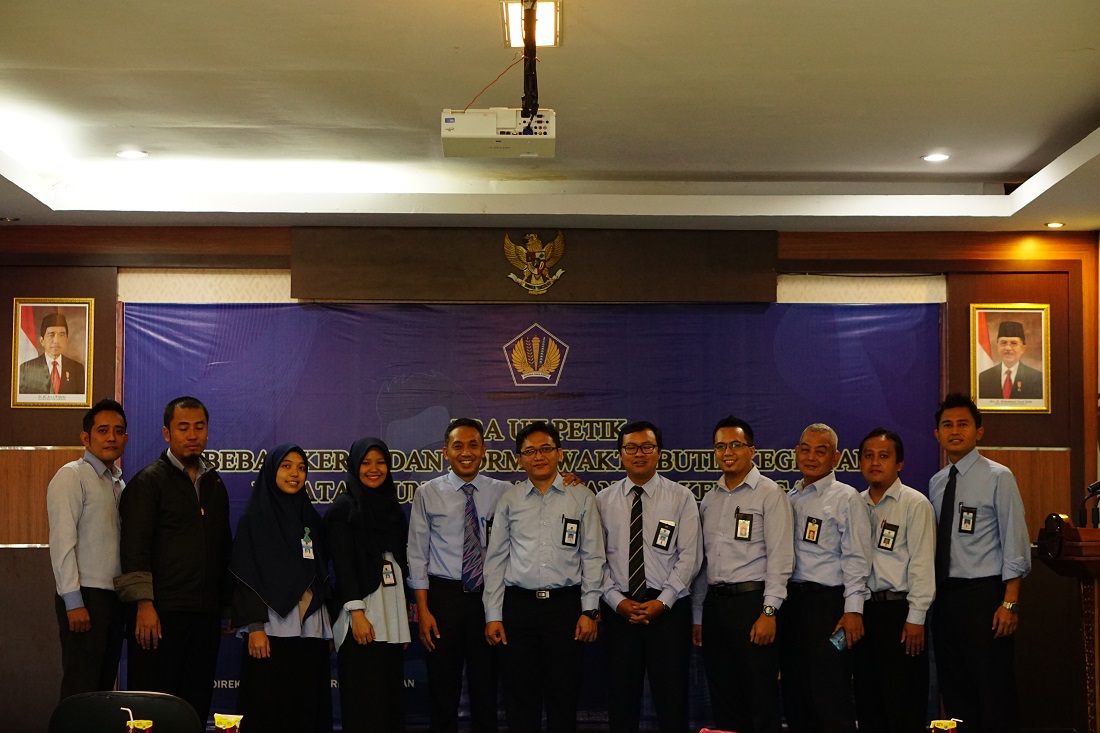 Rabu tanggal 20 Desember 2017 bertempat di Aula KPPN Pelaihari ; Direktorat Sistem Perbendaharaan (DSP) DJPb, Bagian Organisasi dan Ketatalaksanaan (Organta) Sekretariat Jenderal Kementerian Keuangan dan KPPN Pelaihari ber-sinergi melaksanakan Kegiatan Pra Uji Petik Beban Kerja dan Norma Waktu Butir Kegiatan Jabatan Fungsional.