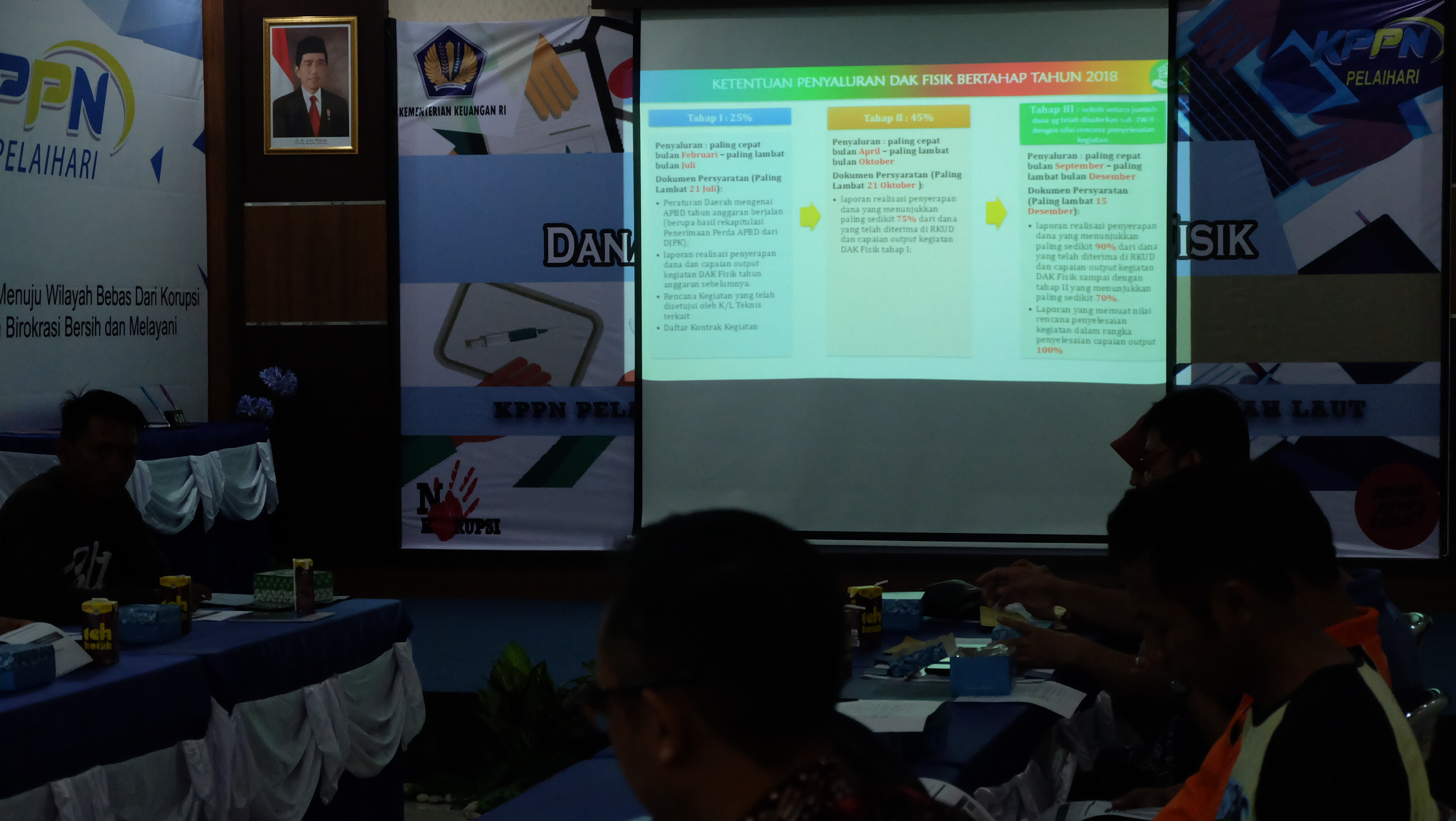 Sampai dengan bulan Juni 2018, DAK Fisik tahap I Tahun 2018 seluruh Bidang telah disalurkan yaitu sebesar 25% dari total pagu. Adapun tujuan diadakannya Rakor Penyaluran DAK Fisik Tahun Anggaran 2018 ini antara lain : (i) Mempersiapkan penyaluran DAK Fisik Tahap II Tahun 2018 dengan lancar, tepat waktu, dan benar; (ii) Mengidentifikasi permasalahan-permasalahan yang mungkin timbul berkenaan dengan DAK Fisik TA. 2018, untuk selanjutnya dapat diselesaikan dengan sinergi Pemda dan KPPN Pelaihari; dan (iii) Mengetahui kesiapan Pemda Kabupaten Tanah Laut, khususnya Dinas-Dinas penerima DAK Fisik TA. 2018.