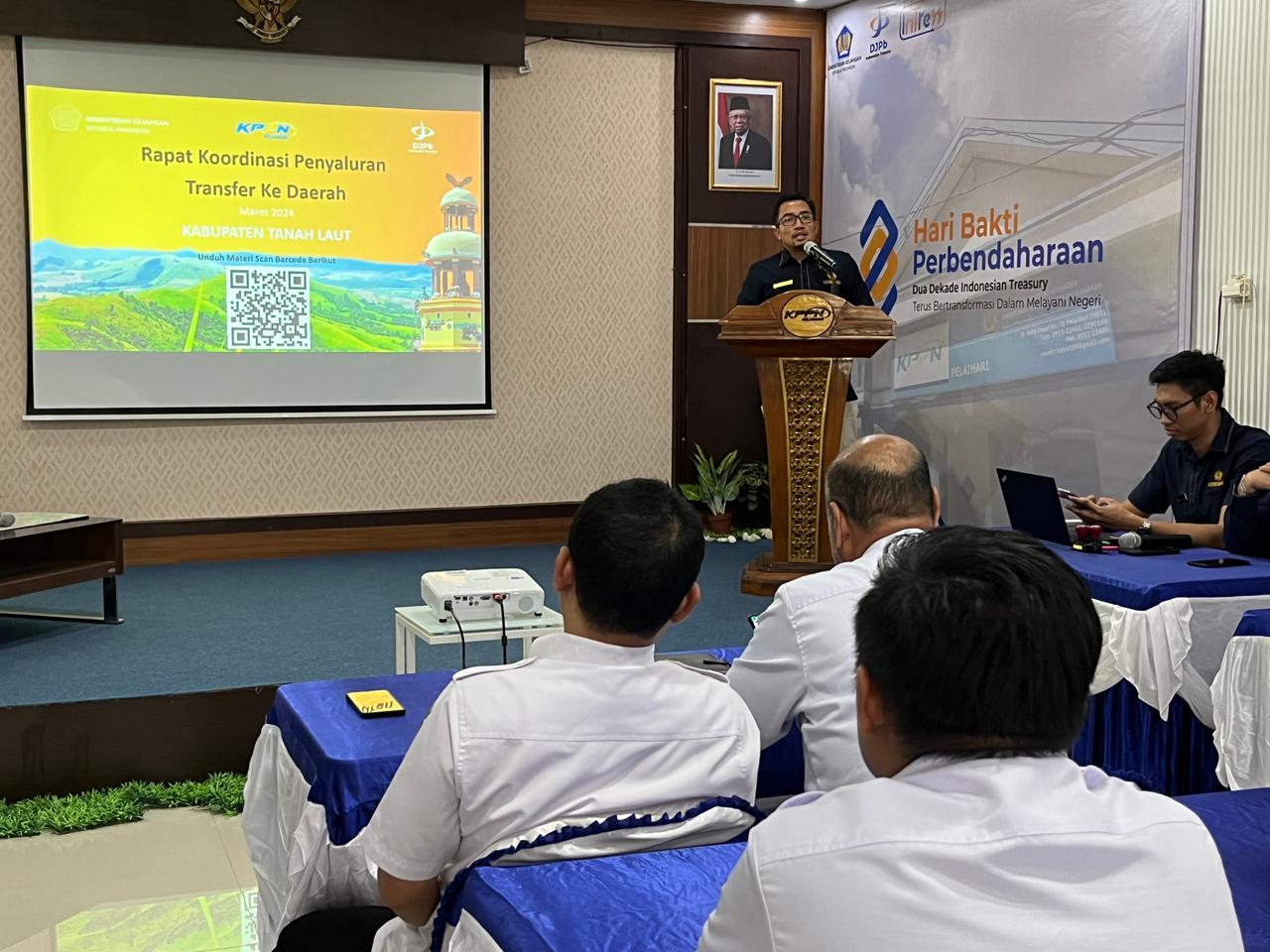 Menjelang hari raya Idul Fitri 1445 Hijriah, dimana kebutuhan konsumsi masyarakat cenderung meningkat, dalam kegiatan rapat Koordinasi Penyaluran Transfer ke Daerah Pemerintah Daerah Tanah Laut (Pemda Tala) melalui Dinas Pemberdayaan Masyarakat Desa (Dinas PMD) dan Kantor Pelayanan Perbendaharaan Negara (KPPN) Pelaihari terus berupaya melakukan percepatan penyaluran Dana Desa termasuk Bantuan Langsung Tunai (BLT) Desa untuk 130 Desa di Kab. Tala.