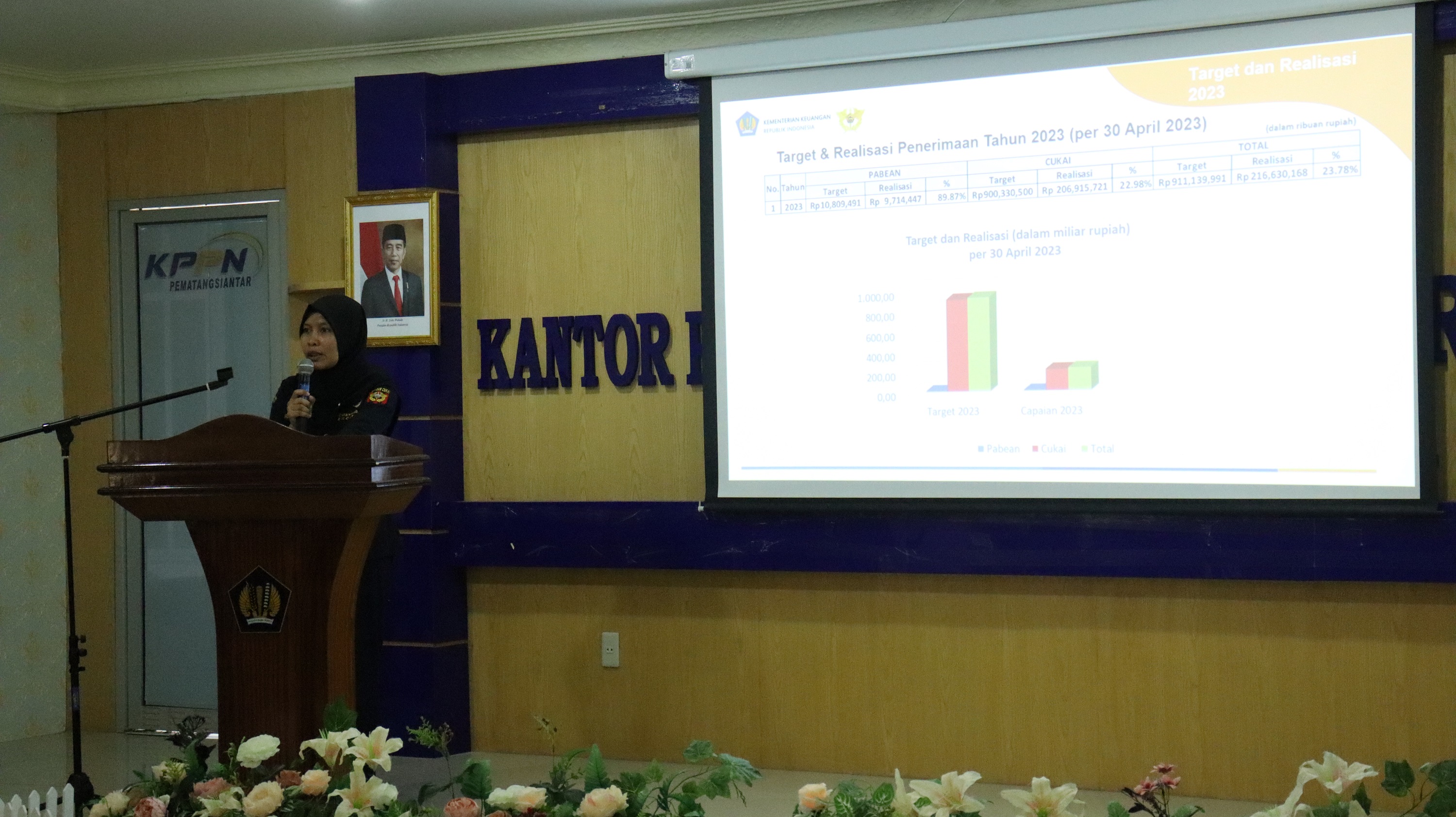 KPP Pratama Pematang Siantar, KPP Bea dan Cukai Pematang Siantar, serta KPKNL Pematang Siantar juga menyampaikan capaian pendapatan negara di wilayah Kota Pematang Siantar dan Kabupaten Simalungun. Pendapatan negara sampai dengan bulan April 2023 sebesar Rp600,87 Miliar ( naik sebesar 3,79% dari periode yang sama tahun anggaran yang lalu. Pendapatan negara tersebut terdiri dari Penerimaan Perpajakan sebesar Rp564,28 Miliar (termasuk Cukai sebesar Rp206,92 Miliar dan Bea Masuk Rp9,71 Miliar) dan Penerimaan Negara Bukan Pajak (PNBP) sebesar Rp36,58 Miliar. Penerimaan perpajakan turun sebesar 1,05% dan PNBP naik sebesar 323% dibandingkan dengan periode yang sama tahun anggaran yang lalu. Capaian PNBP naik drastis disebabkan oleh PNBP yang dikelola oleh Rumah Sakit Tentara yang sebelumnya dikelola oleh Kesdam I/BB.