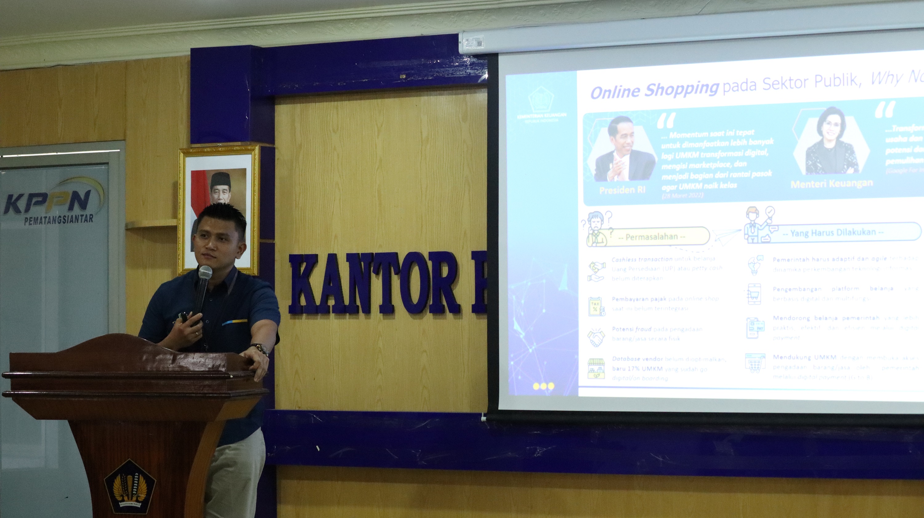 Di kesempatan yang sama juga, Fungsional Pembina Teknis Perbendaharan Negara (PTPN) juga menyampaikan materi terkait dengan peningkatan transaksi Digital Payment menggunakan Digipay Satu, Kartu Kredit Pemerintah dan juga Virtual Account, dalam rangka menuju transaksi cashless pemerintah. Seluruh satker juga harap dapat segera melakukan perekaman Tingkat Kandungan Dalam Negeri (TKDN) pada Aplikasi SAKTI dalam rangka mendukung penggunaan Produk Dalam Negeri sesuai dengan arahan Bapak Presiden. Disamping itu, seluruh satker harap mempersiapkan penerapan login aplikasi SAKTI menggunakan Nomor Induk Kependudukan (NIK), serta melakukan koordinasi pendaftaran Tanda Tangan Elektronik (TTE) dengan Kementerian/Lembaga yang akan digunakan dalam penandatanganan Surat Perintah Pembayaran (SPP) atau Surat Perintah Membayar (SPM).