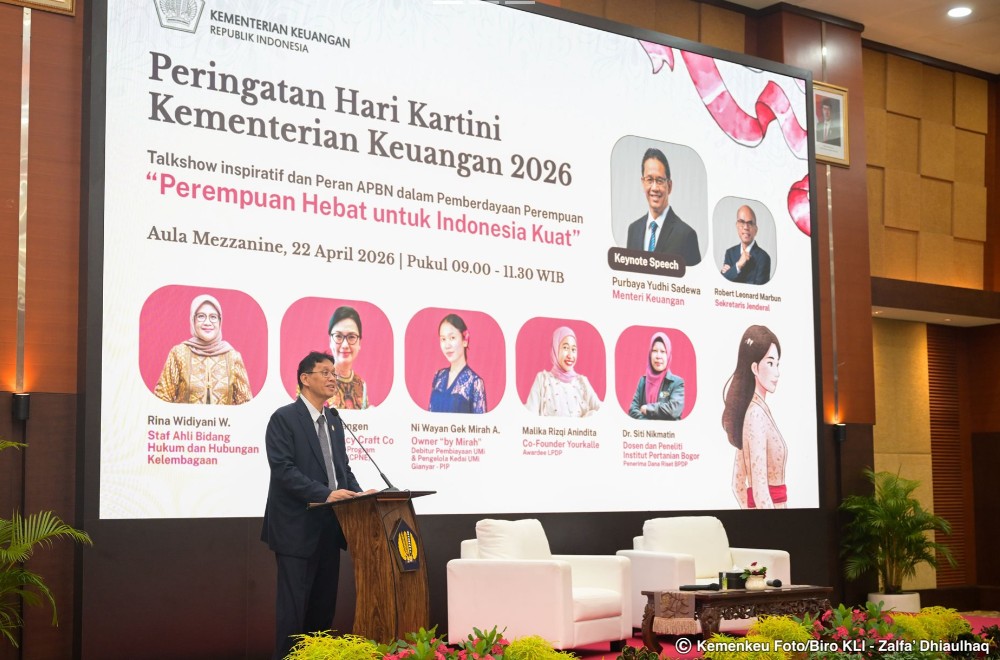 Jakarta, 26 April 2026. Menteri Keuangan (Menkeu), Purbaya Yudhi Sadewa, menegaskan pentingnya peran perempuan saat ini sebagai penopang perekonomian nasional dalam arahannya pada Peringatan Hari Kartini Kementerian Keuangan Tahun 2026 yang mengusung tema “Perempuan Hebat, Indonesia Kuat”.
