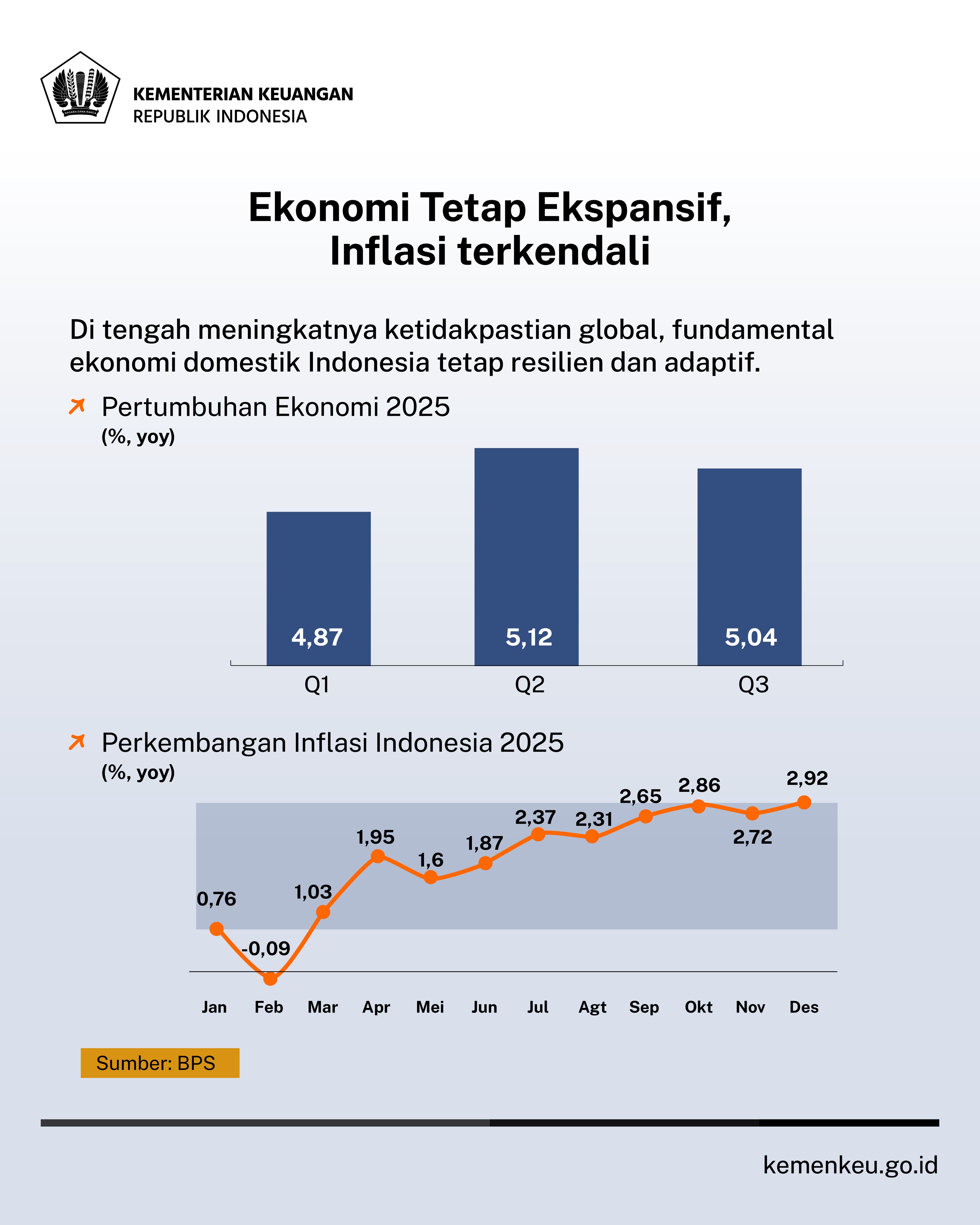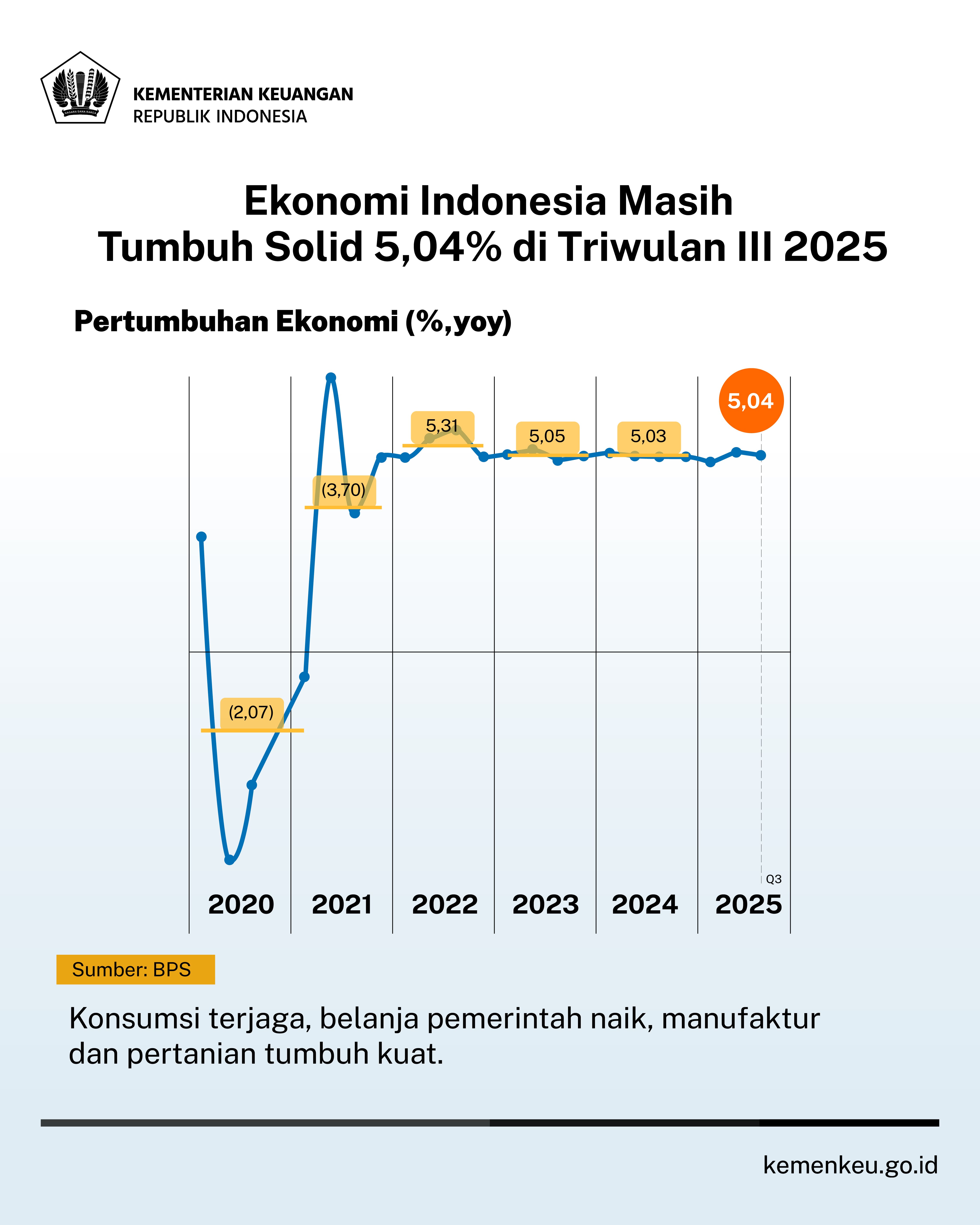 Di tengah eskalasi perang dagang dan ekonomi dan menghangatnya ancaman perang di berbagai negara, ekonomi Indonesia masih mampu bertahan positif.