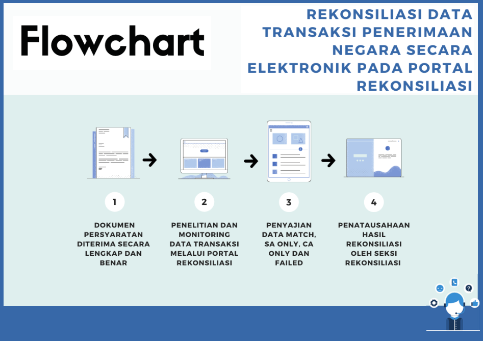 Rekonsiliasi data adalah kegiatan penyamaan data transaksi penerimaan yang berasal dari Collecting Agent dengan data yang terdapat pada data settlement. Kegiatan ini diperlukan agar data atau infomasi terkait penerimaan negara tetap akurat.