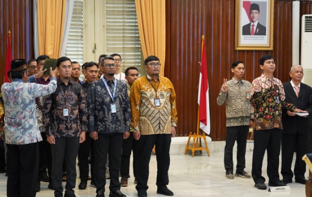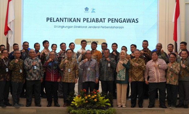 Jakarta, 17 April 2026. Sekretaris Direktorat Jenderal Perbendaharaan, Arif Wibawa, melantik dan mengambil sumpah 17 Pejabat Pengawas di lingkungan Direktorat Jenderal Perbendaharaan pada Senin, 13 April 2026. Kegiatan ini dilaksanakan di Aula Gedung Jusuf Anwar dan dihadiri oleh para pejabat yang dilantik dari Kantor Pusat serta unit kerja lingkup Kantor Wilayah Ditjen Perbendaharaan Provinsi DKI Jakarta.