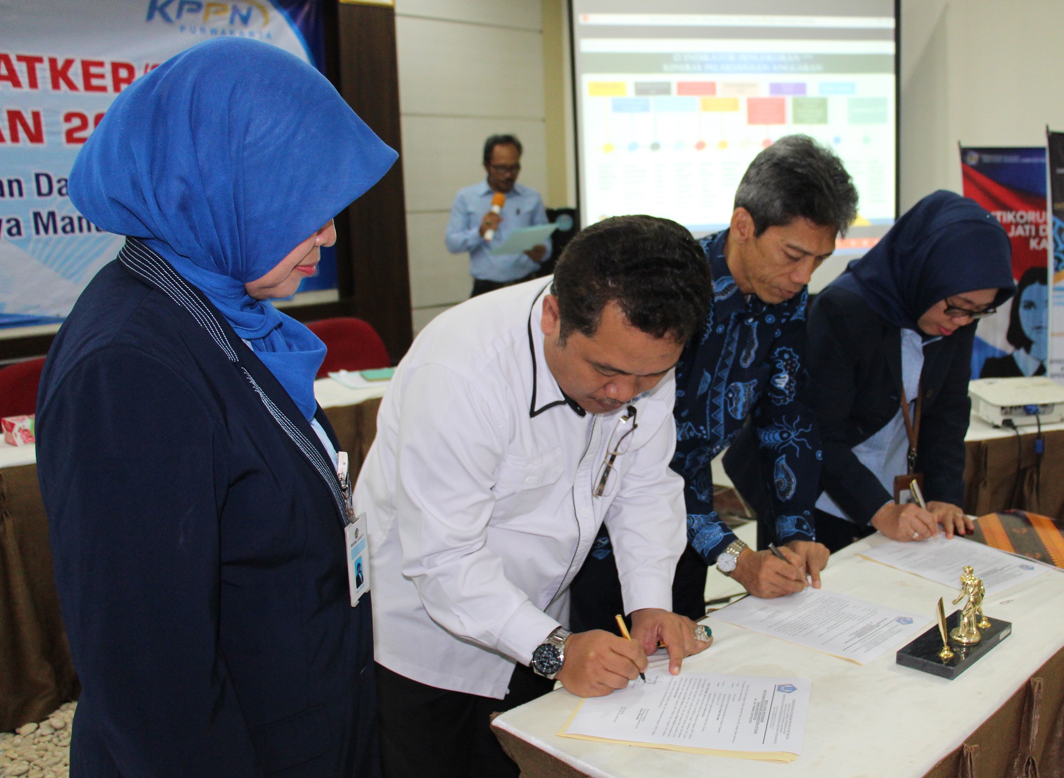 Kantor Pelayanan Perbendaharaan Negara Purwakarta, pada hari Rabu tanggal 26 Desember 2018, bertempat di AULA lantai gedung KPPN Purwakarta, Jl. Ibrahim Singadilaga No.82 Purwakarta , menggelar acara Penyerahan DIPA Tahun Anggran 2019, Penandatanganan Berita Acara Serah Terima DIPA Tahun Anggaran 2019 dan Fakta Integritas, serta Sosialisasi Evaluasi IKPA satker mitra kerja KPPN Purwakarta tahun anggaran 2018, dengan tema “APBN untuk mendorong Investasi dan Daya Saing melalui Pembangunan Sumber Daya Manusia” acara dibuka oleh Kepala KPPN Purwakarta Ibu Rini Djarwati dihadiri para pejabat eselon IV dan para KPA atau yang mewakili satker liingkup KPPN Purwakarta, yaitu Wilayah Kabupaten Purwakarta dan Subang dalam sambutannya beliau berpesan agar APBN ini dikelola dengan baik untuk dapat bersama membangun negeri melalui pengelolaan penerimaan dan pengeluaran keuangan negara yang propesional, kredibel, transparan, akuntabel dan dapat dipertanggungjawabkan.