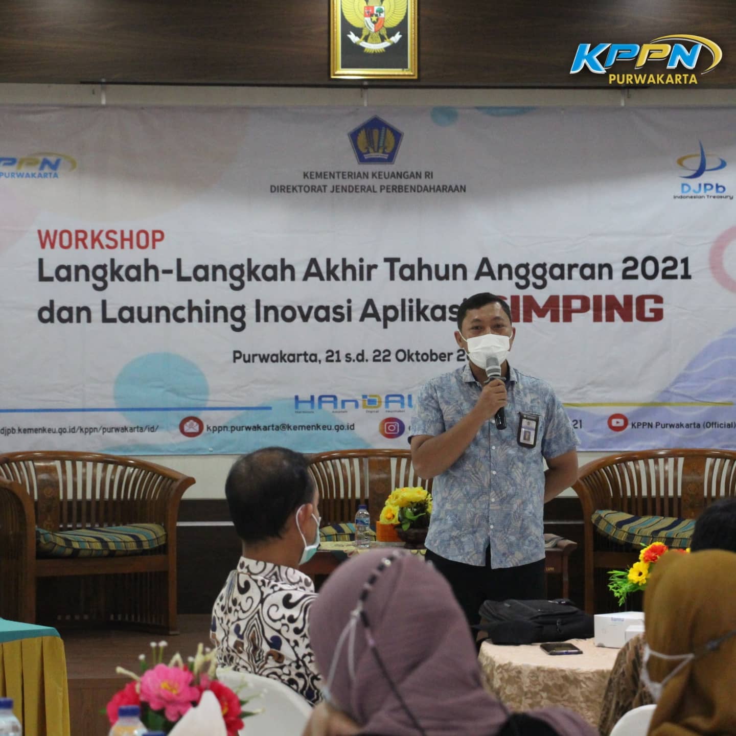 Kamis dan Jumat tanggal 21 dan 22 Oktober 2021 KPPN Purwakarta menyelenggarakan Workshop dan Sosialisasi Peraturan Direktur Jenderal Perbendaharaan Nomor PER-9/PB/2021 tentang Pedoman Pelaksanaan Penerimaan dan Pengeluaran Negara Pada Akhir Tahun Anggaran 2021 serta inovasi aplikasi Simping milik KPPN Purwakarta.