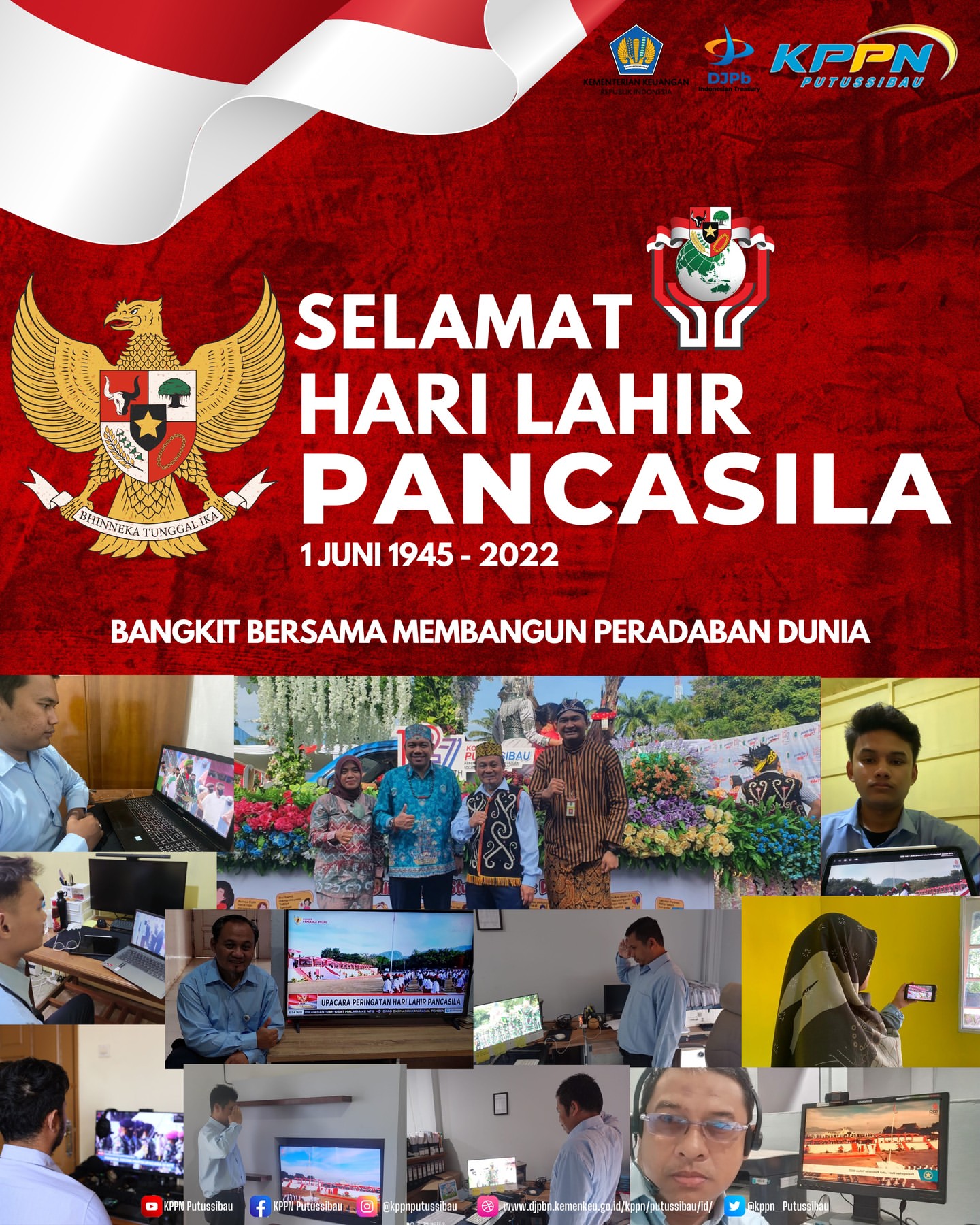 Dengan nilai - nilai Pancasila mari kita bersama memberikan yang terbaik untuk negara ini. KPPN Putussibau mengucapkan Selamat hari lahir Pancasila 1 Juni 2022. Bangkit Bersama Membangun Peradaban Dunia.