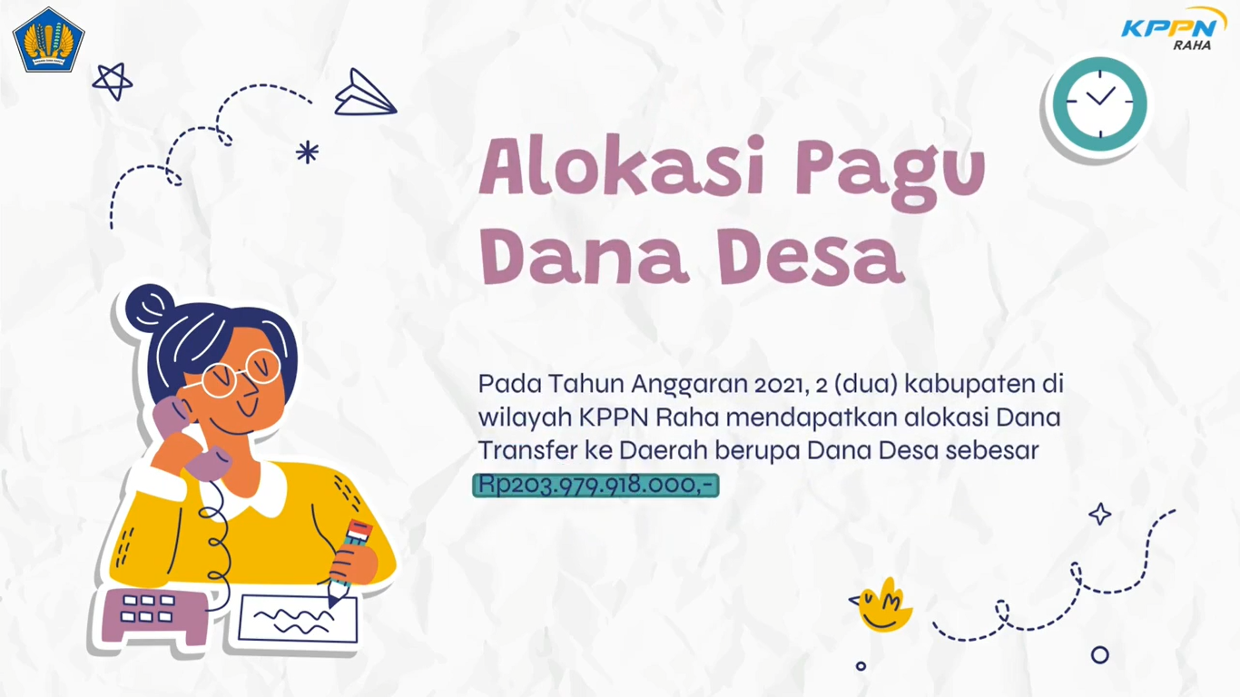 KPPN Raha selaku Penyalur Dana Desa untuk Kabupaten Muna dan Kabupaten Muna Barat mendapatkan alokasi Dana Transfer ke Daerah berupa Dana Desa sebesar 203M.