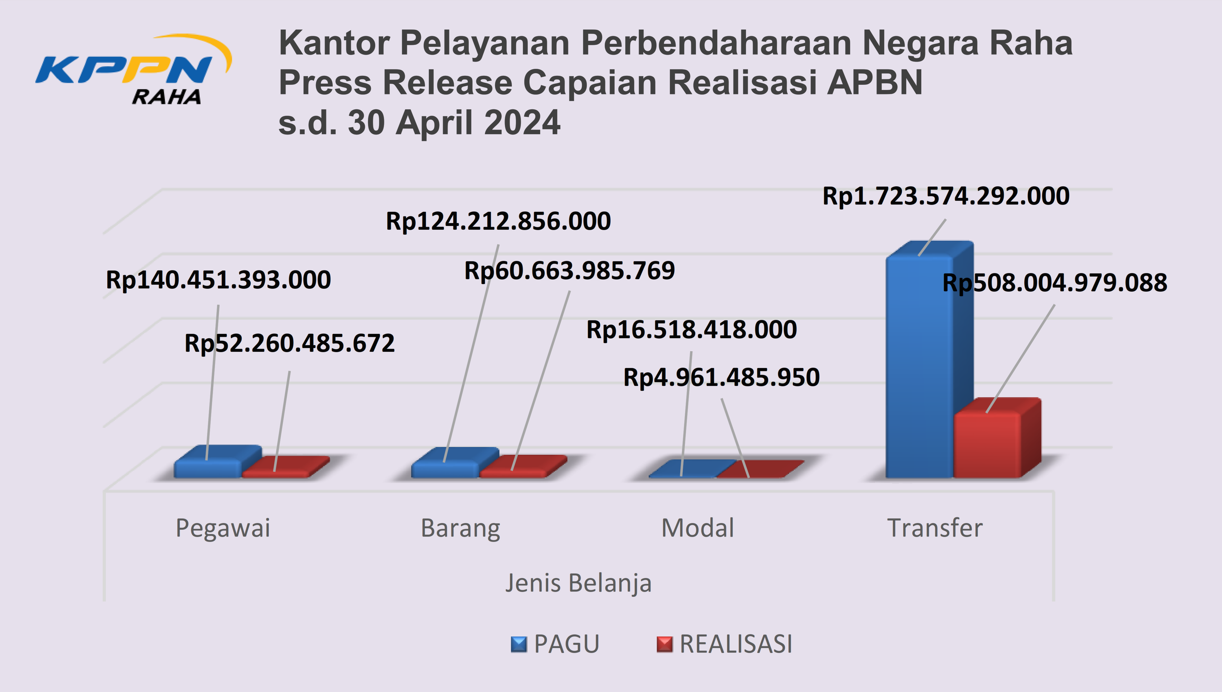 Raha, Kab. Muna - Press Release Capaian APBN s.d. 30 April 2024 Wilayah Pembayaran KPPN Raha (07/05)