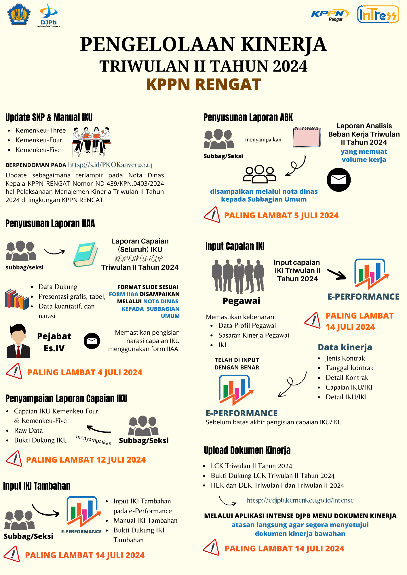 Dalam acara tersebut dibuka oleh Kepala KPPN Rengat, Bapak Nanang Heru Setyo Purdianto dan dilanjutkan penyampaian materi oleh Bapak Ipung Prastowo, serta dari pihak Bank BRI cabang Kuantan Singingi, dilanjutkan dengan dialog dan diskusi dengan kesimpulan peningkatan sinergi dan kerjasama antara pihak Bank, KPPN Rengat, serta satuan Kerja dalam rangka menghadapi permasalahan-permasalahan dalam pelaksanaan budaya non tunai (cashless), sekaligus rumusan strategi peningkatan belanja menggunakan CMS, DIGIPAY dan KKP.