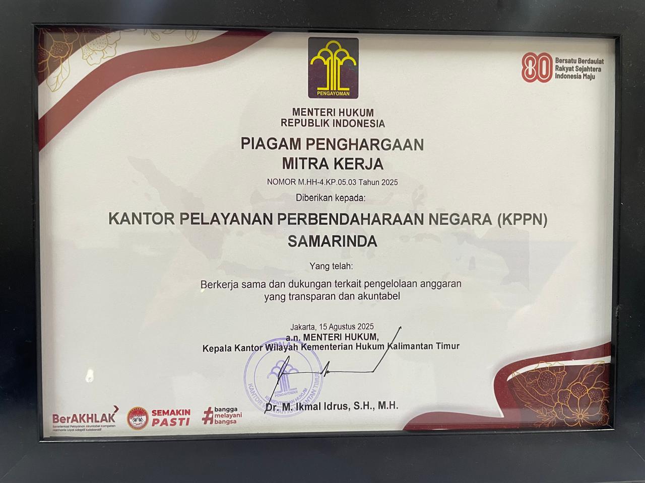 1. Piagam Penghargaan Mitra Kerja Menteri Hukum Republik Indonesia