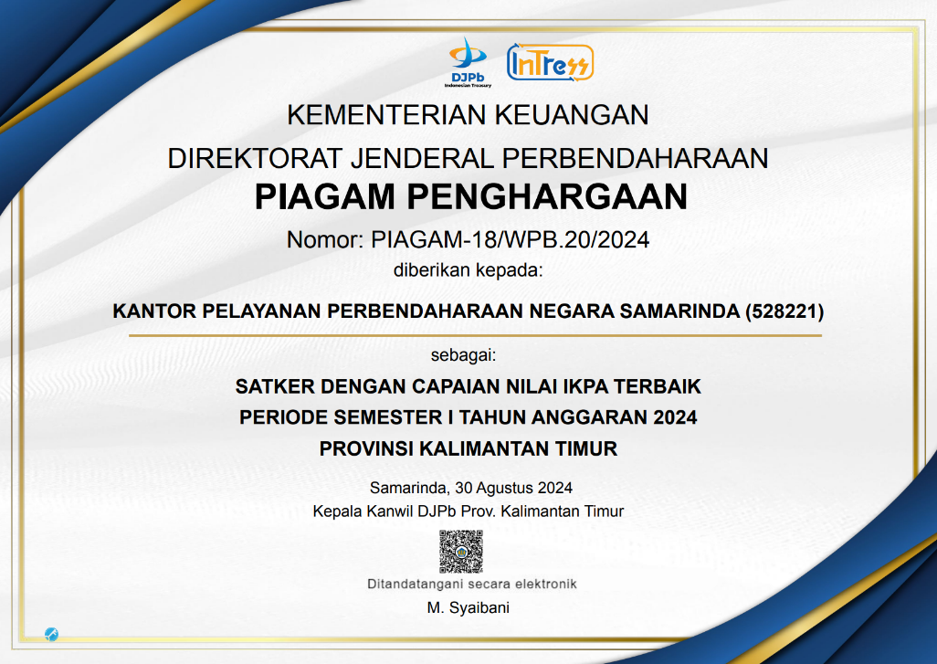 2. Piagam Penghargaan Satker dengan Capaian Nilai IKPA Terbaik Semester I 2024