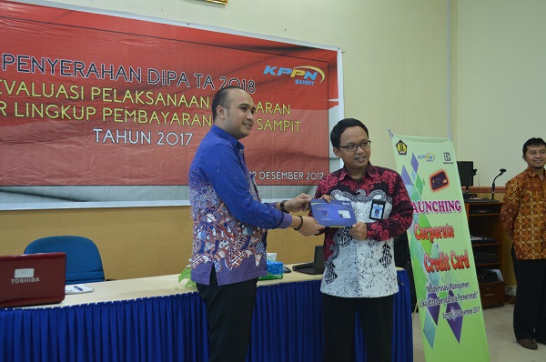 Lounching Kartu Kredit Pemerintah ini dilaksanakan dengan penyerahan Kartu Kredit Pemerintah secara simbolis dari Bapak Rachmat Irfan Syam selaku kepala Cabang Bank Rakyat Indonesia Sampit kepada Kepala KPPN Sampit dan diikuti dengan penyerahan secara langsung kepada para pejabat serta pegawai yang sesuai ketentuan berhak menerima/menggunakan Kartu Kredit Pemerintah.