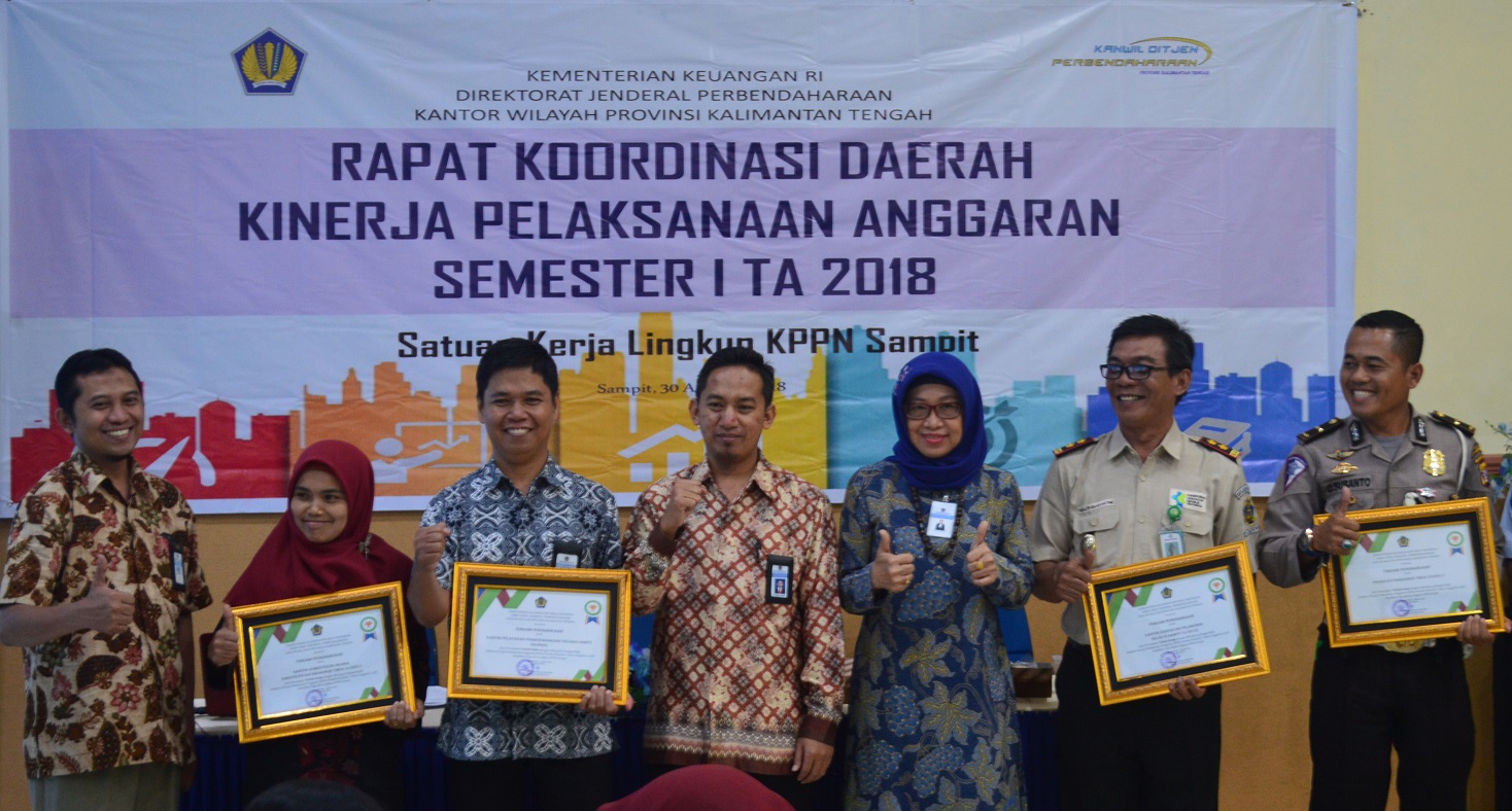 Sebagai bentuk apresiasi terhadap kinerja satker diwilayah kerja KPPN Sampit, pada kesempatan Rakor Pelaksanaan Anggaran Tahun 2018, Kanwil Ditjen Perbendaharaan memberikan penghargaan kepada satker yang mimiliki nilai indikator kinerja pelaksanaan anggaran terbaik, dengan mengelompokkan kedalam kategori Satker terbaik yang nilai pagu besar dan kelompok satker yang memiliki nilai pagu kecil.