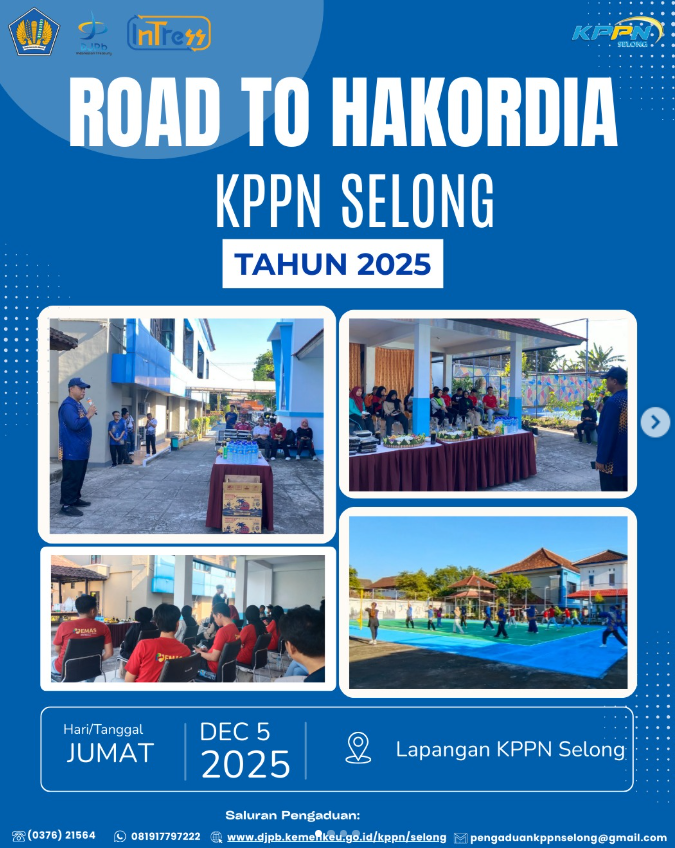 Jumat, 5 Desember 2025, KPPN Selong menggelar kegiatan Road to Hakordia di lapangan KPPN Selong. Acara diawali dengan senam bersama untuk semangat sehat, dilanjutkan dengan sosialisasi anti korupsi oleh Plt. Kepala KPPN Selong, Bapak Adi Widyandana.