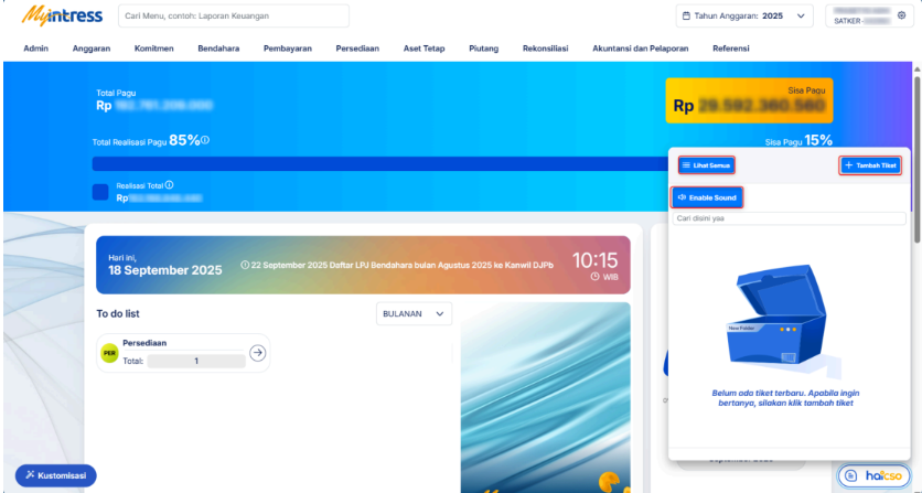DJPb menyadari bahwa kecepatan solusi adalah kunci kepuasan satker. Oleh karena itu, MyIntress memperkenalkan sistem ticketing baru yang sangat fleksibel. Kini, petugas di KPPN dapat melakukan proses assign dan unassigned tiket secara lebih dinamis untuk memastikan pertanyaan satker ditangani oleh ahli yang tepat di bidangnya. (Panduan Feedback HAI CSO)
