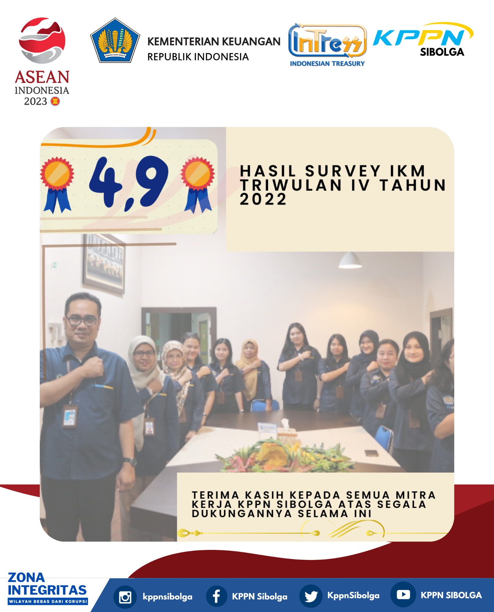 Berikut disampaikan Hasil Survey Kepuasan Layanan Triwulan IV Tahun 2022.