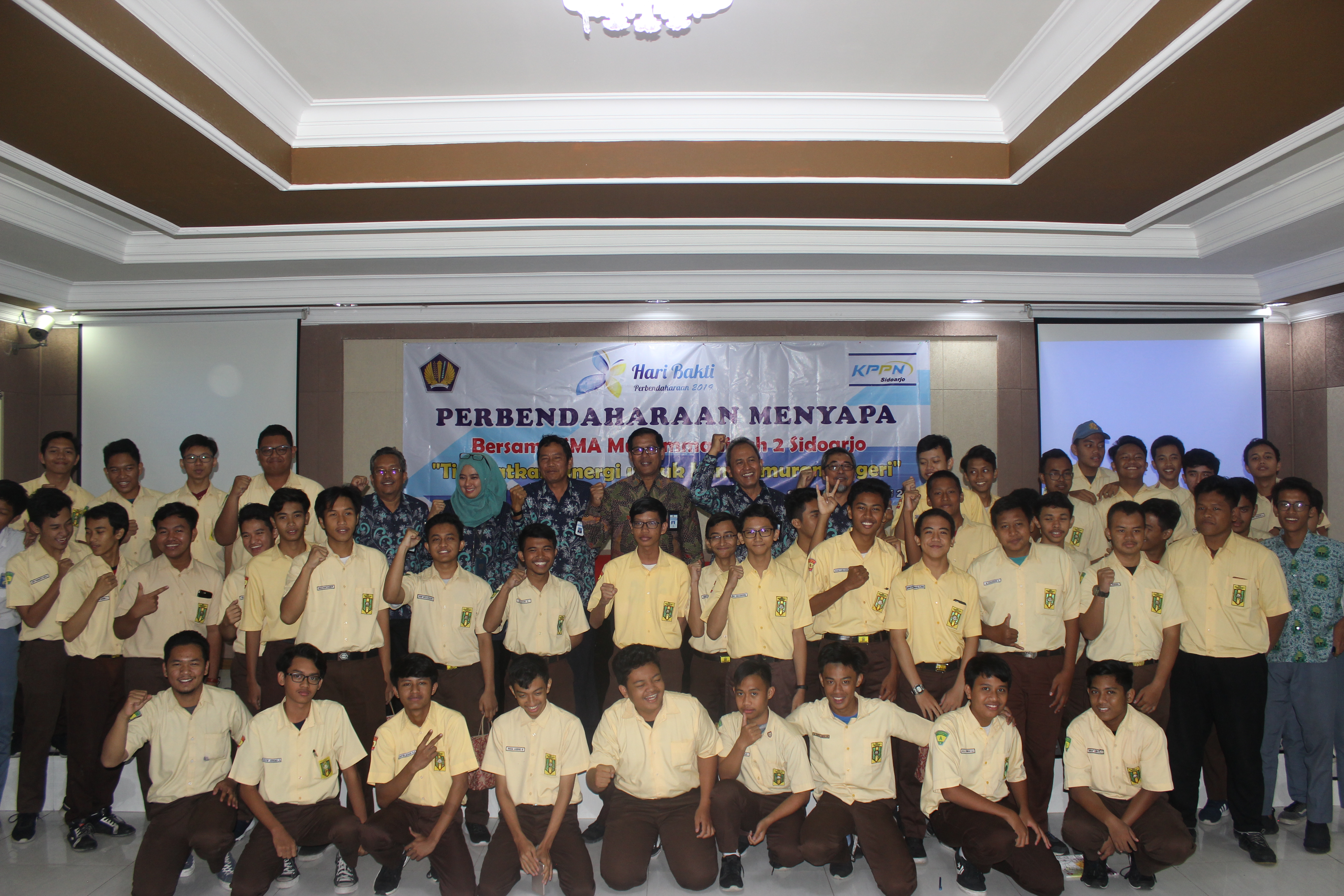 Kantor Pelayanan Perbendaharaan Negara (KPPN) Sidoarjo menyelenggarakan kegiatan Perbendaharaan Menyapa Hari Bakti Perbendaharaan Tahun 2019 pada hari Selasa (22/1), bertempat di aula SMA Muhammadiyah 2 Sidoarjokegiatan Perbendaharaan menyapa ini bertujuan memperkenalkan lebih dekat kepada Siswa dan Siswi SMA Muhammadiyah 2 Sidoarjo Peran dan fungsi KPPN dalam mengawal APBN, KPPN Sidoarjo bagian dari Kemenkeu Unit Eselon I, KPPN di daerah sebagai BUN (atas Kuasa Kemenkeu) semua penerimaan dan pengelolaan Keuangan ada di KPPN Sidoajo .
