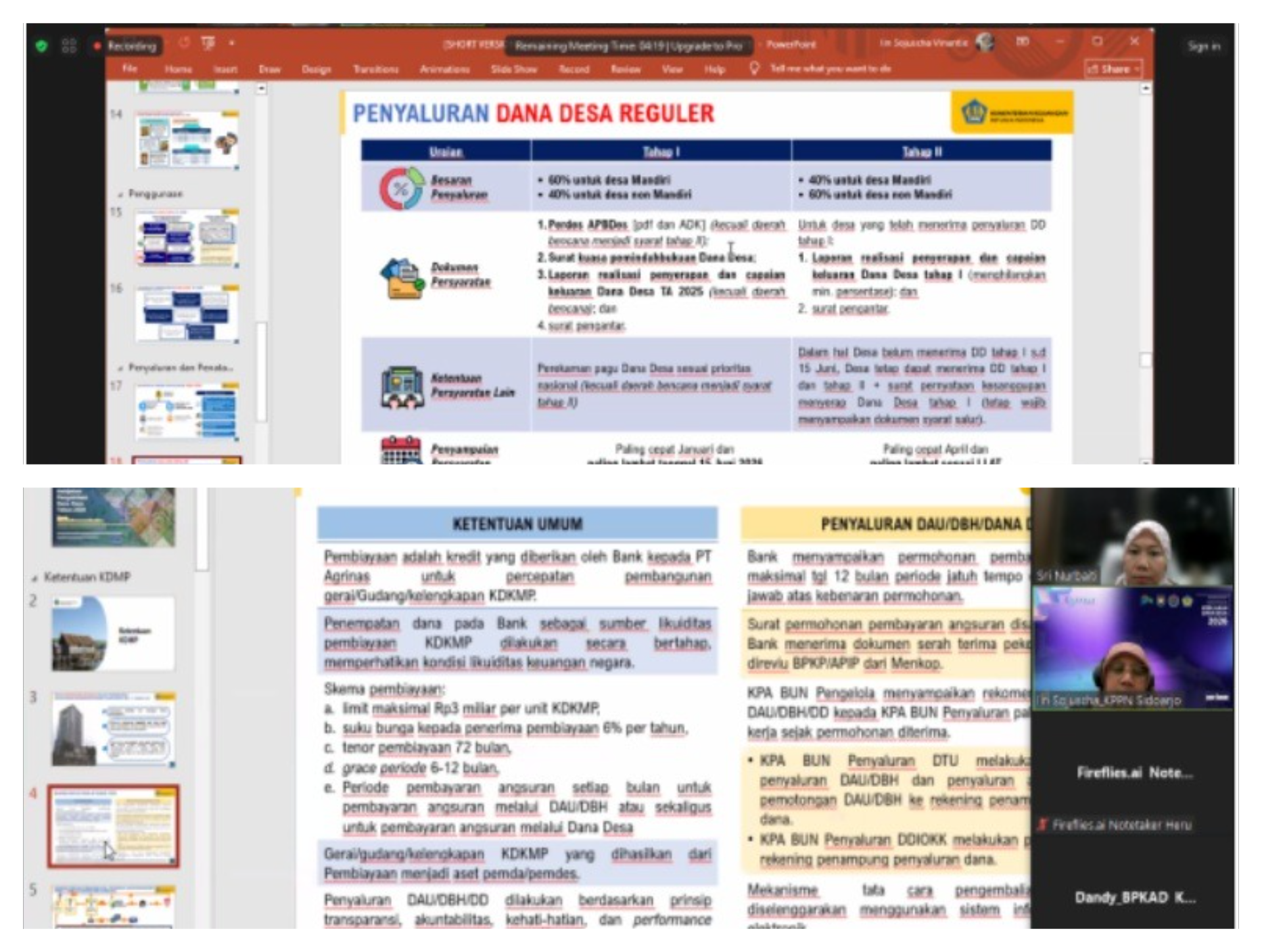 Selain itu, dibahas pula aspek penatausahaan dan pelaporan Dana Desa, mulai dari penganggaran dalam APBD dan APBDes, pencatatan penyaluran melalui SP2D dan aplikasi OM‑SPAN, hingga ketentuan khusus bagi desa terdampak bencana yang dapat memperoleh pengecualian persyaratan tertentu berdasarkan permohonan kepala daerah. Pemahaman yang baik terhadap ketentuan ini diharapkan dapat meminimalkan kendala administrasi dalam proses penyaluran Dana Desa TA 2026.