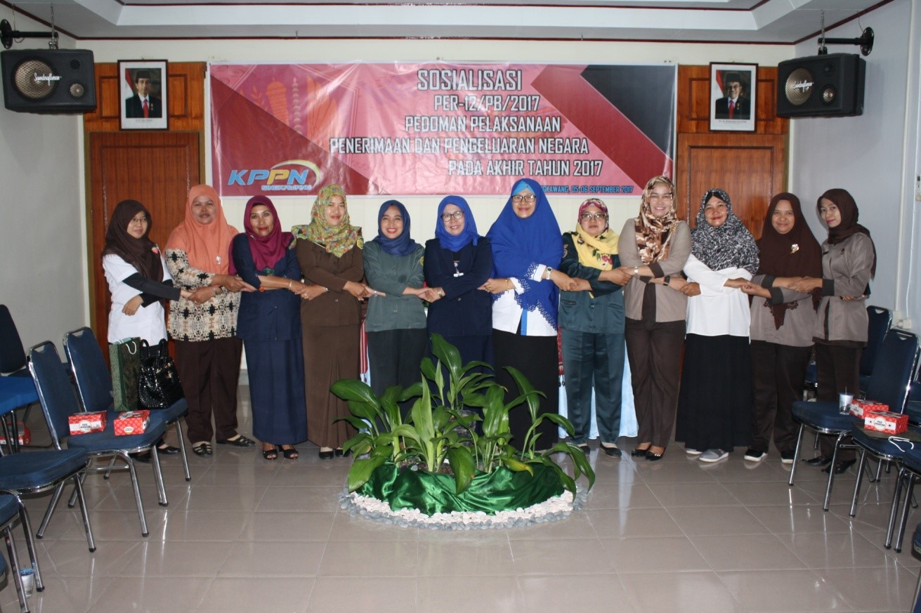 Menindaklanjuti surat Kepala Kanwil Ditjen Perbendaharaan nomor S-693/WPB.16/2017 tanggal 31 Agustus 2017 hal Sosialisasi dan Implementasi PER-12/PB/2017 tentang Pedoman Pelaksanaan Penerimaan dan Pengeluaran Negara pada Akhir Tahun Anggaran 2017, KPPN Singkawang telah melaksanakan kegiatan Sosialisasi Pedoman Pelaksanaan Penerimaan dan Pengeluaran Negara pada Akhir Tahun Anggaran 2017 (PER-12/PB/2017).