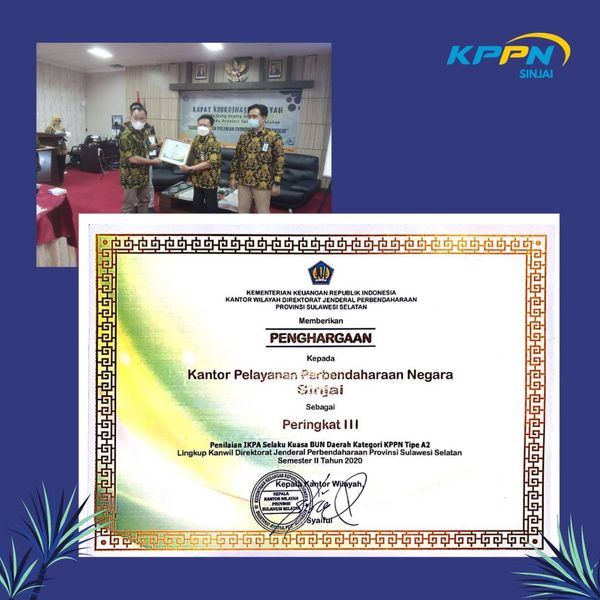 - Peringkat III (Selaku BUN) Indikator Kinerja Pelaksanaan Anggaran (IKPA) Tahun 2020;