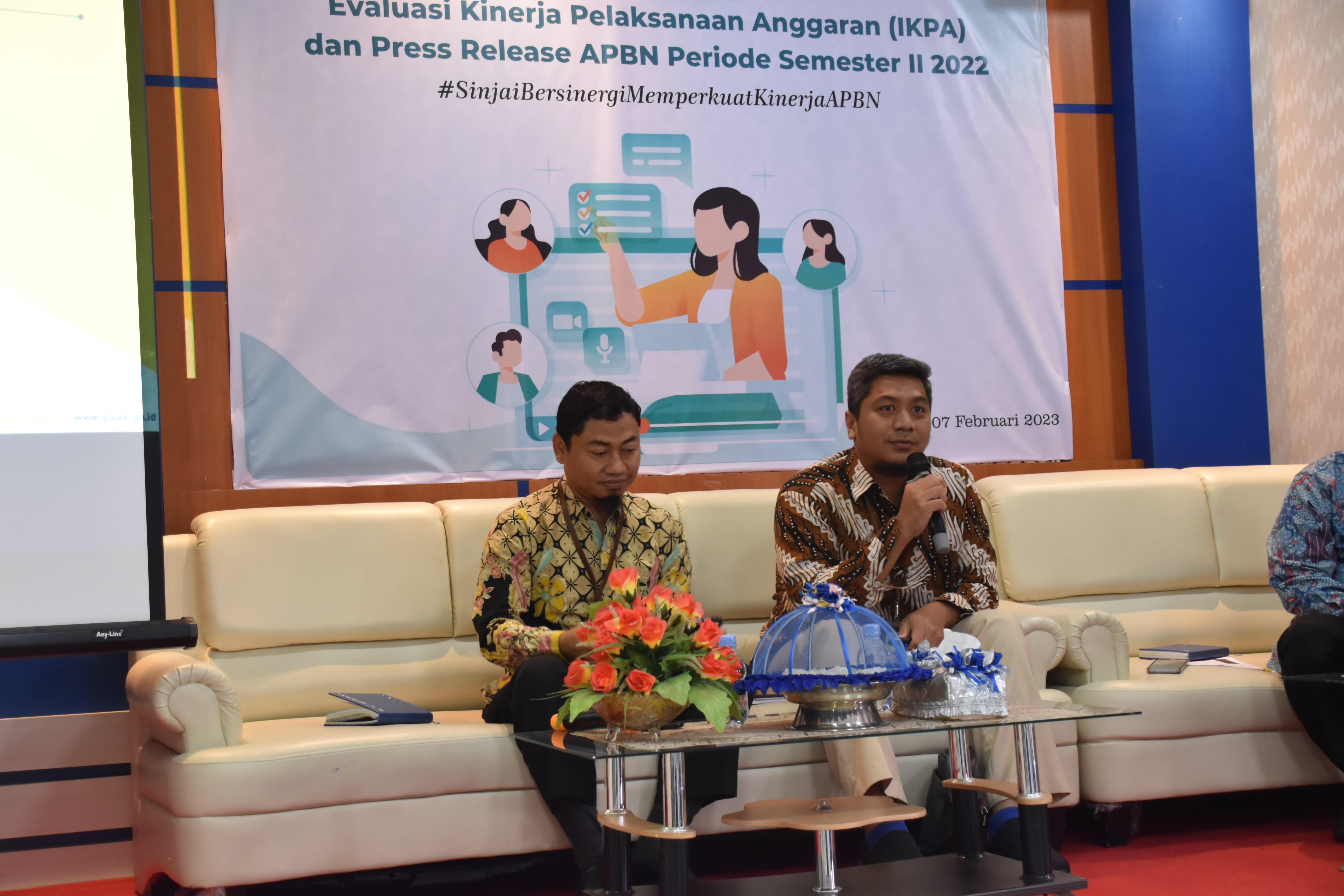 Kantor Pelayanan Perbendaharaan Negara Sinjai pada hari Selasa, tanggal 07 Februari 2023, telah melaksanakan kegiatan evaluasi pelaksanaan IKPA dan Press Conference Kinerja APBN Semester II Tahun 2022 yang bertempat di aula KPPN Sinjai. Sebagai peserta hadir para KPA satuan kerja lingkup KPPN Sinjai, pejabat Pemda, BPKAD, DPMD selaku mitra dalam pengelolaan DKADD, media serta para pelaku UMKM binaan KPPN Sinjai. Turut pula hadir dari KPP Blukumba yang diwakili oleh Bapak Hendrawan selaku kepala KP2KP Sinjai.