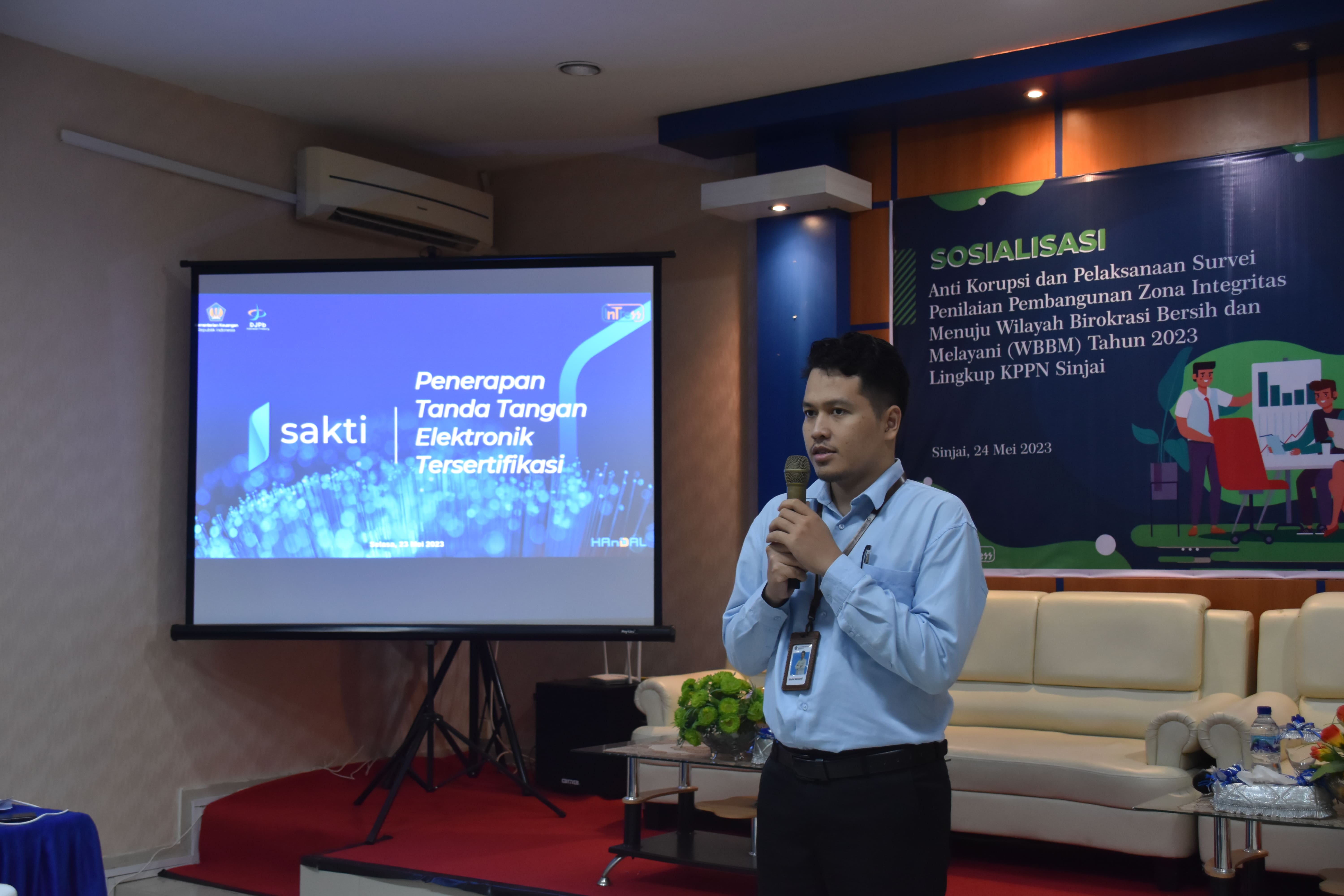 SINJAI - Kantor Pelayanan Perbendaharaan Negara (KPPN) Sinjai menyelenggarakan kegiatan Sosialisasi Anti Korupsi dan DS pada SAKTI yang diselenggarakan pada Rabu (24/5) di Aula KPPN Sinjai. Kegiatan ini hadiri oleh Satker Mitra Kerja KPPN Sinjai dan Pemda Kab. Sinjai.