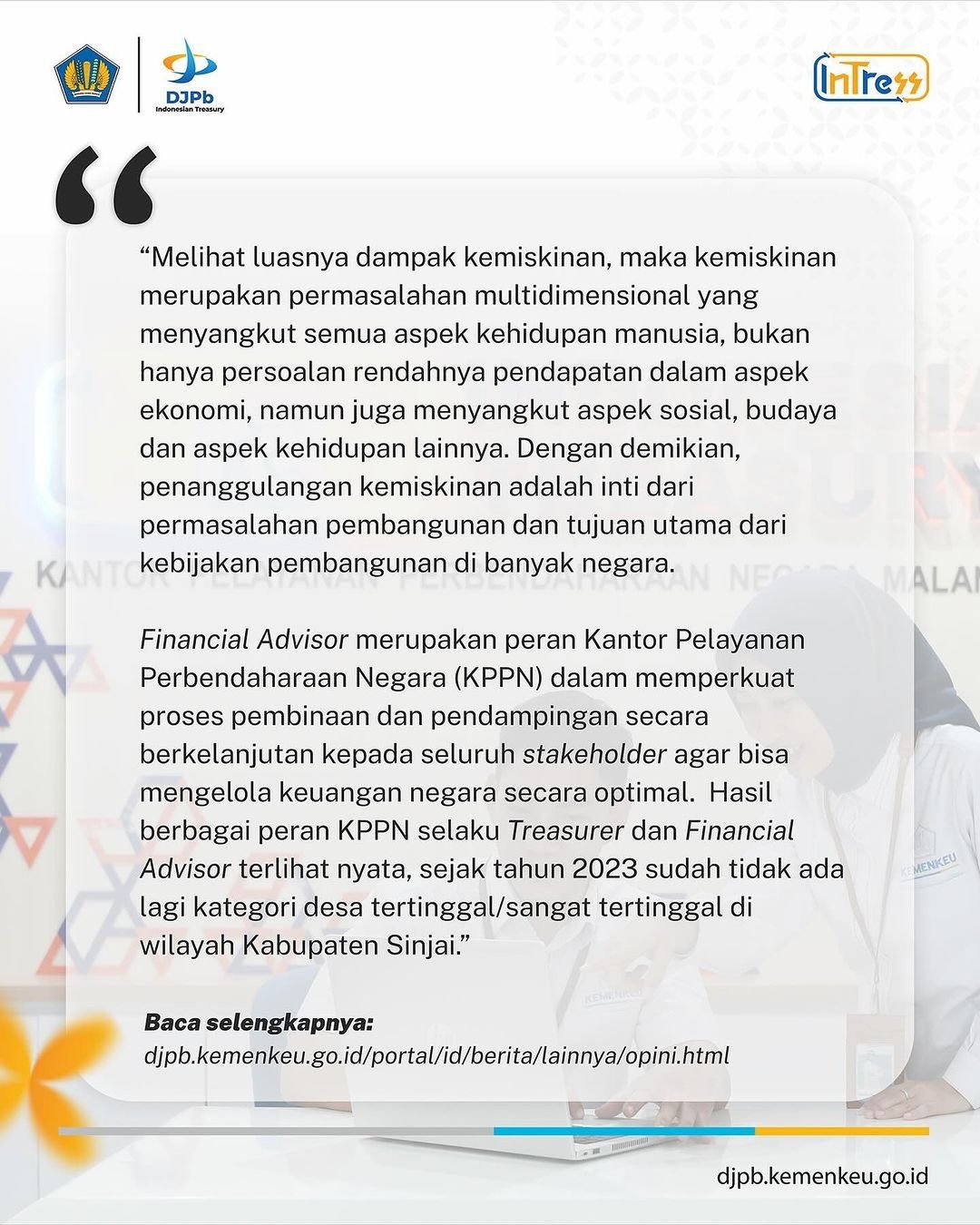 Hasil berbagai peran KPPN selaku Treasurer dan Financial Advisor terlihat nyata, Sejak tahun 2023 sudah tidak ada lagi kategori desa tertinggal/sangat tertinggal di wilayah Kabupaten Sinjai. Selain itu, jumlah Keluarga Penerima Manfaat (KPM) penerima BLT juga berkurang. Sesuai data dari Dinas Pemberdayaan Masyarakat dan Desa (DPMD) Kabupaten Sinjai bahwa jumlah KPM penerima BLT TA 2023 menurun menjadi 2.241 KPM dibandingkan TA 2022 sebesar 7.656 KPM.