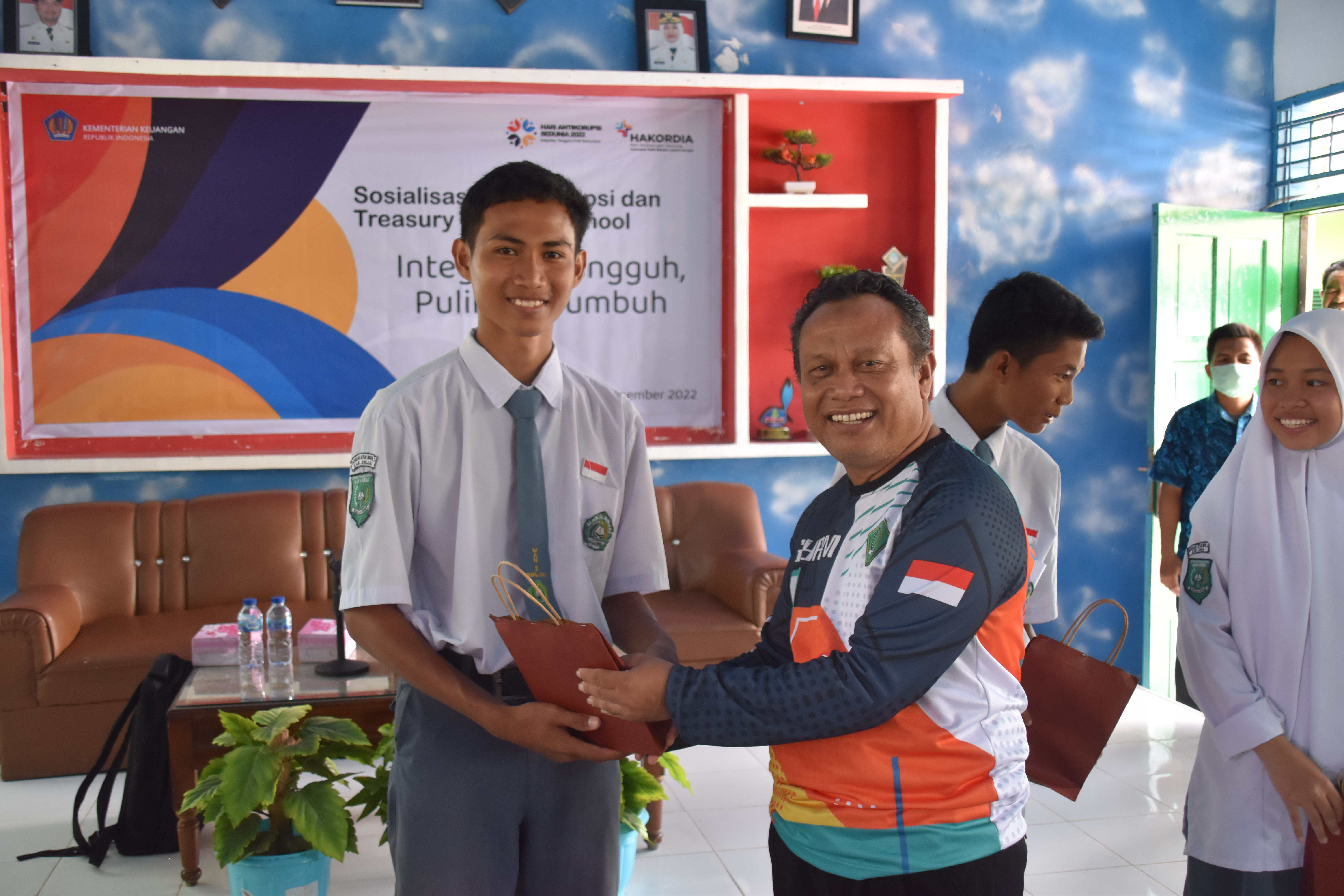 Kepala KPPN Sinjai, Arif Kurniadi, menjadi narasumber dalam Sosialisasi Antikorupsi dan Treasury Goes To School