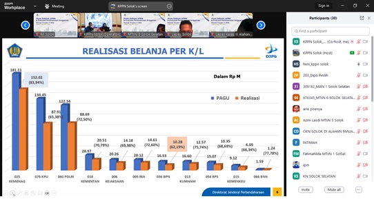 Kepala KPPN Solok juga menekankan agar satker mengoptimalkan transaksi melalui digitalisasi pembayaran (KKP, digipay, dan VA). Berdasarkan realisasi belanja KKP tahun ini, akan dilakukan penyesuaian nilai UP KKP yang sekaligus juga menurunkan UP tunai. Hal ini dikarenakan satker belum maksimal dalam menggunakan KKP.