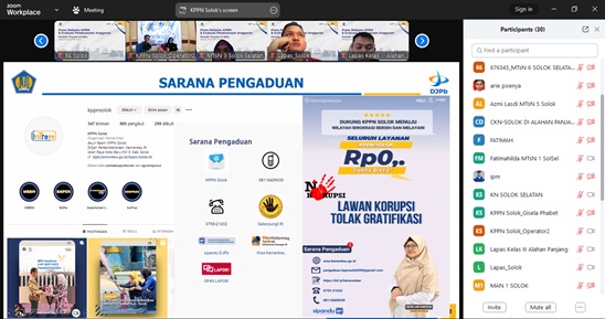 Sebagai penutup, Kepala KPPN Solok megingatkan kembali bahwa seluruh penyelenggaraan layanan pada KPPN Solok adalah bebas biaya / Rp.0 (Nol). Apabila satker melihat, mendengar, atau mengetahui terdapat pejabat/pegawai KPPN Solok yang meminta dan/atau menerima gratifikasi dimohon bantuan untuk melaporkan melalui saluran pengaduan yang telah disampaikan melalui surat dan media sosial KPPN Solok.