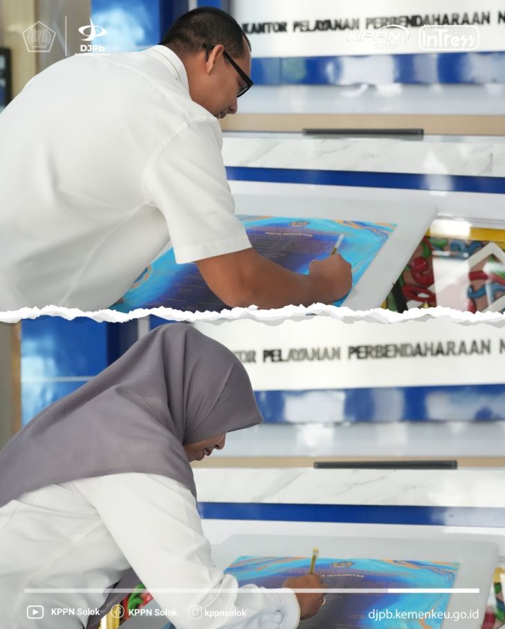 Pada hari Senin, tanggal 19 Januari 2026, seluruh pegawai Kantor Pelayanan Perbendaharaan Negara Solok telah melaksanakan Penandatanganan Pakta Integritas Internal Tahun 2026 sebagai wujud nyata komitmen untuk bekerja dengan jujur, profesional, dan berintegritas.