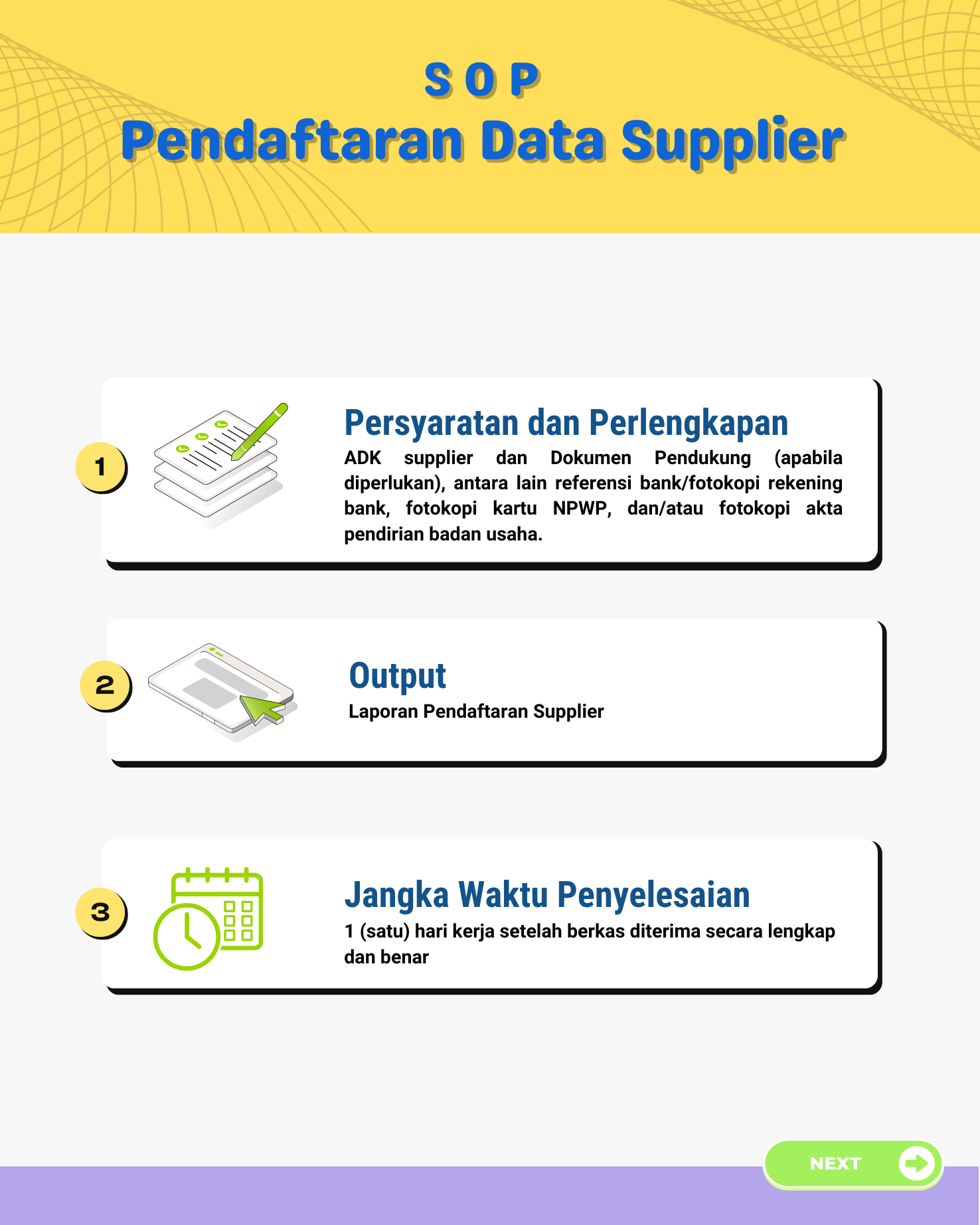 Merupakan SOP yang menggambarkan prosedur pendaftaran data supplier pada Kantor Pelayananan Perbendaharaan Negara mulai dari proses menerima ADK supplier hingga penatausahaan laporan pendaftaran data supplier.