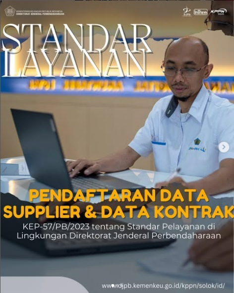 Standar Layanan Pendaftaran Data Supplier dan Data Kontrak sesuai KEP-57/PB/2023 tentang Standar Pelayanan di Lingkungan Direktorat Jenderal Perbendaharaan