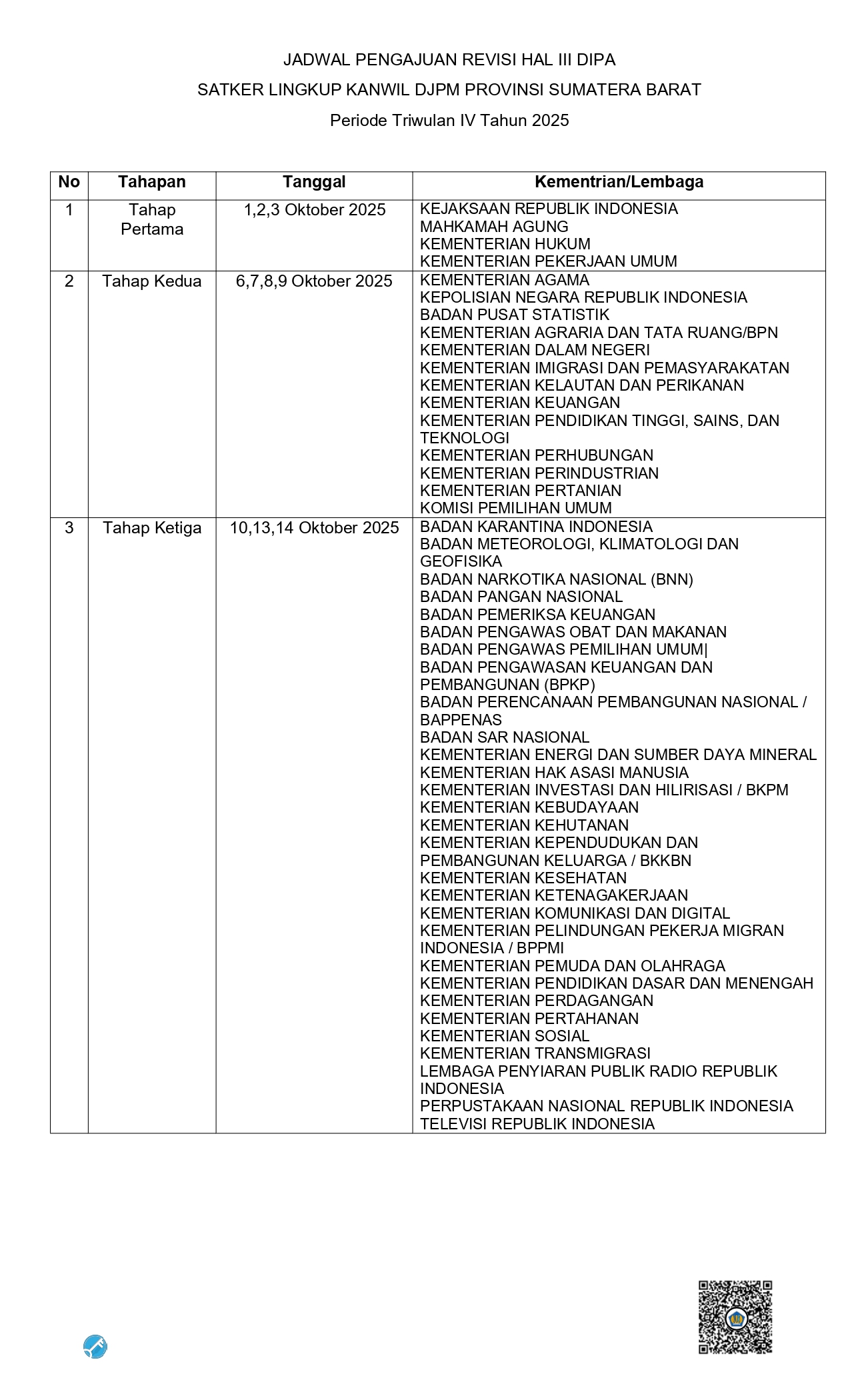 S-367/KPN.0303/2025 Tentang Penyampaian Jadwal Pengajuan Revisi Halaman III DIPA Periode Triwulan IV Tahun Anggaran 2025