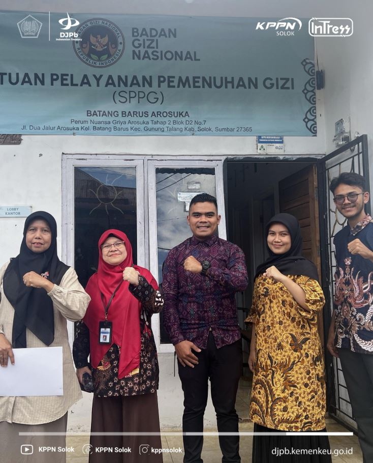 Solok, 30 September 2025 – Dalam rangka mendukung keberhasilan Program Makanan Bergizi Gratis (MBG) yang menjadi salah satu program prioritas pemerintah di tahun 2025, Kantor Pelayanan Perbendaharaan Negara (KPPN) Tipe A1 Solok melaksanakan kunjungan kerja ke dua Satuan Pelayanan Pemenuhan Gizi (SPPG) di Kabupaten Solok.