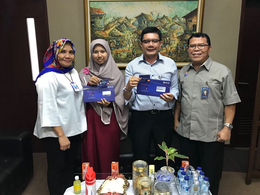 Penyerahan Kartu Kredit dari Kepala Cabang BRI Sukabumi Kepada Kepala KPPN Sukabumi Ibu Sofia Rita Diana Bersama Kasubbag Umum KPPN Sukabumi Bapak Anthoni Manullang dan Bendahara Satker KPPN Sukabumi Ibu Nur Awalina hal itu dalam rangka pengaplikasian Peraturan Dirjen Perbendaharaan Nomor Per- 17/PB/2017 Tentang Ujicoba Pembayaran dengan Kartu Kredit dalam rangka penggunaan Uang Persediaan