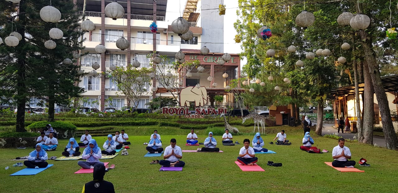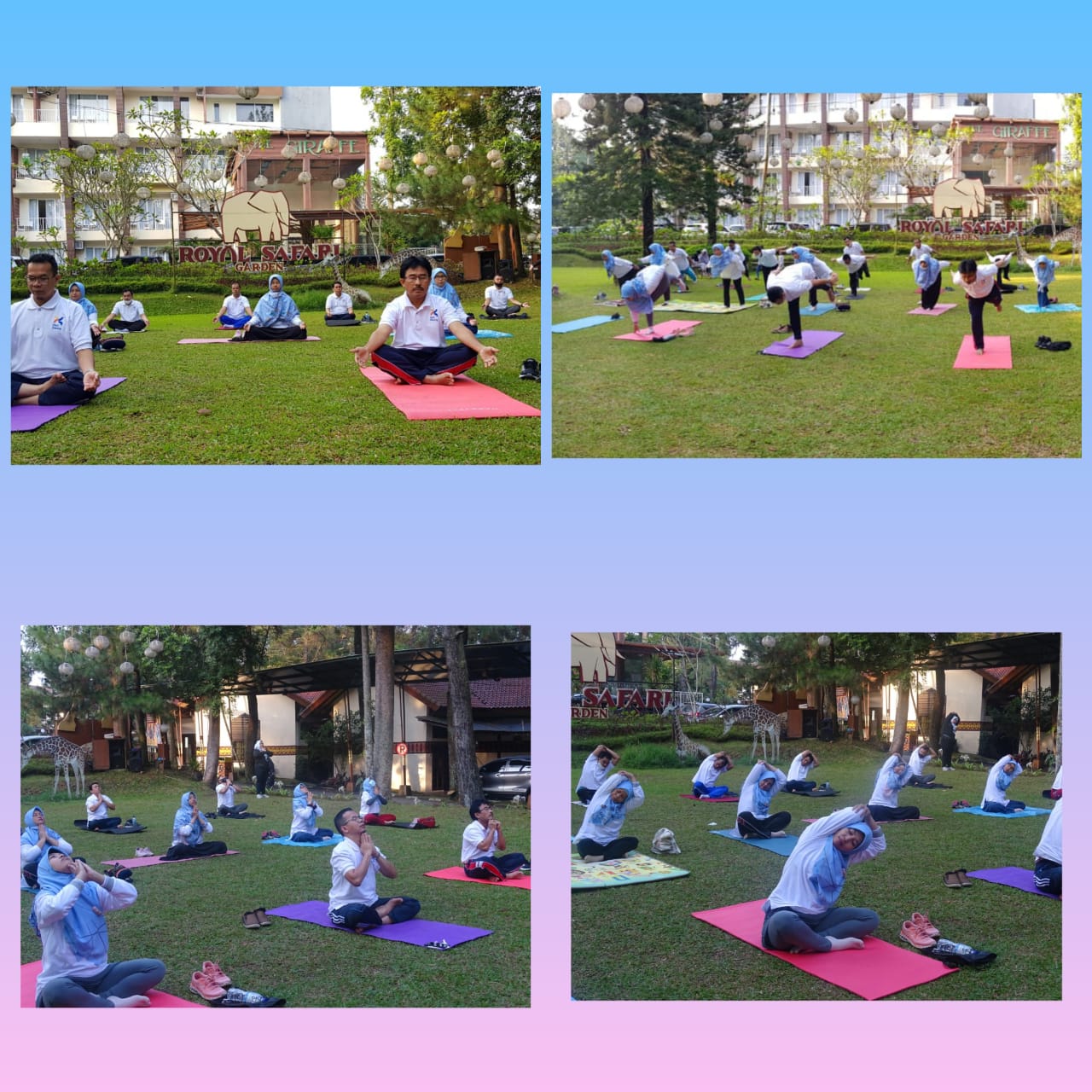 Keesokan harinya pukul 6 pagi kami sudah berkumpul untuk melakukan yoga bersama instruktur yoga untuk meningkatkan kesehatan fisik dan pikiran didukung dengan suasana hotel yang sejuk dan asri. Para pegawai pun merasa segar setelah melakukan yoga. Dalam jadwal yang sudah direncanakan seharusnya dilakukan senam setelah yoga, namun informasi dari pihak hotel bahwa musik dengan suara kencang bisa dipasang setelah pukul 7.30 pagi karena dikhawatirkan banyak tamu hotel yang masih beristirahat di pagi hari. Oleh karena itu setelah yoga kami menuju restoran hotel untuk sarapan. Kemudian setelah sarapan, di pukul 8.30 kami melaksanakan senam ringan untuk menambah semangat di pagi hari. Jadwal selanjutnya seharusnya adalah permainan/game kebersamaan para pegawai dan peralatan pun sudah disiapkan, namun dikarenakan hampir semua pegawai sudah merasa lelah setelah yoga dan senam, akhirnya permainan tidak jadi dilaksanakan. Rencananya akan dilaksanakan di lain waktu di Sukabumi. Setelah itu pegawai beristirahat dan bisa bersiap-siap untuk pulang.
