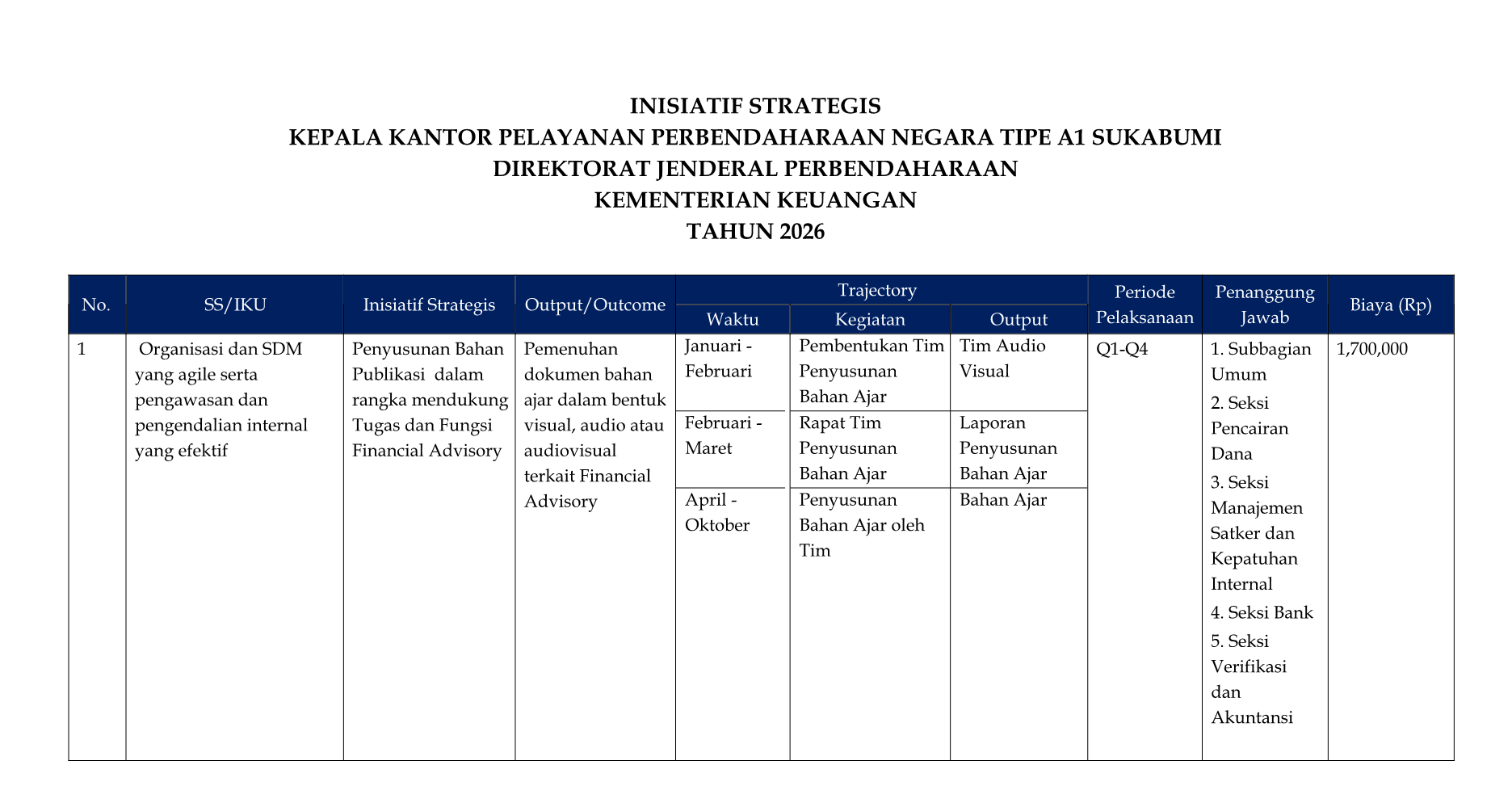 6) Mewujudkan tata kelola sumber daya, proses bisnis, dan sistem teknologi informasi perbendaharaan yang modern, efektif, dan adaptif.