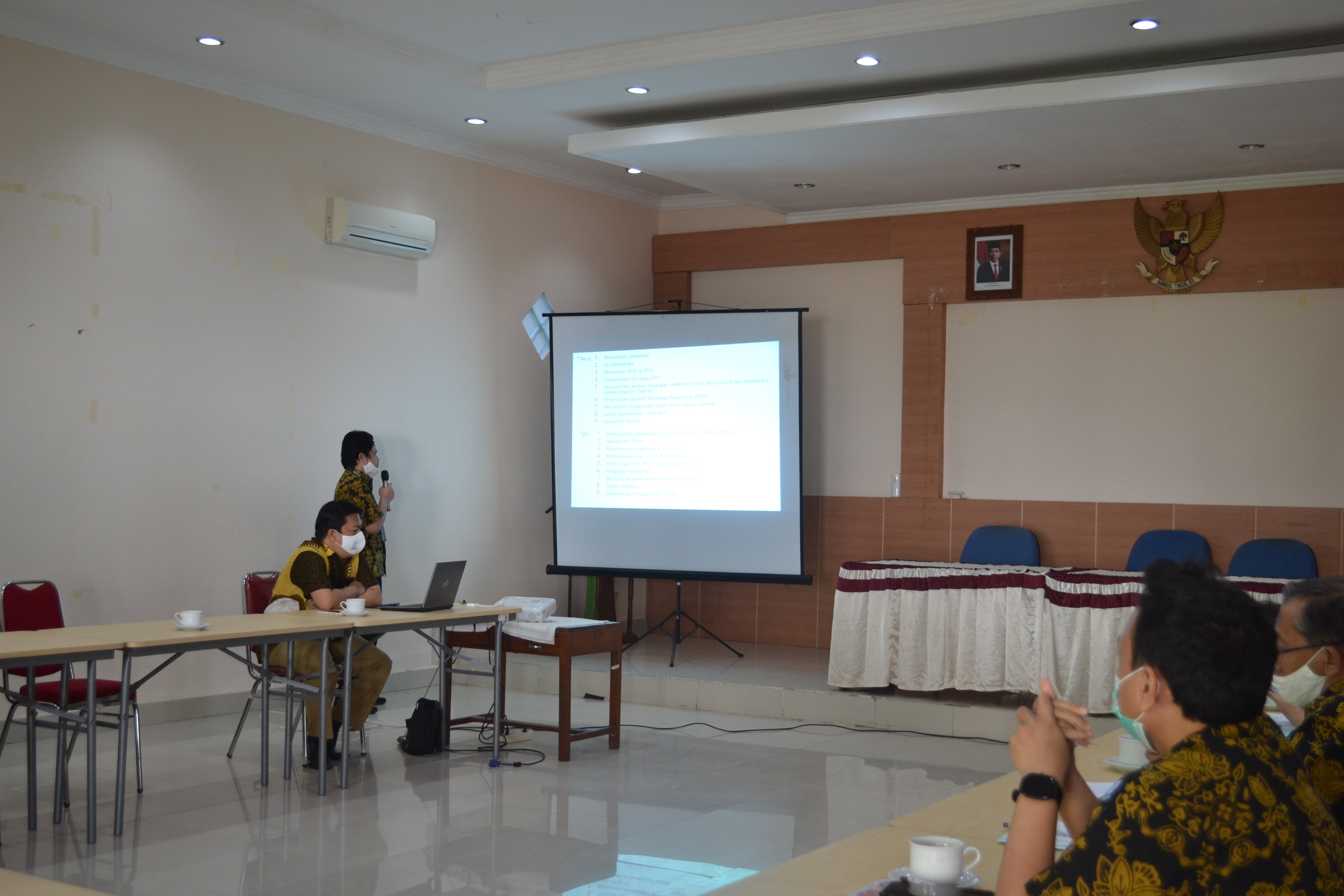 Gugus Kendali Mutu dilaksanakan mulai pukul 14.00 WITA sampai dengan kurang lebih pukul 16.00 WITA dengan tema Internalisasi Tugas dan Fungsi Seksi VeraKi pada Kantor Pelayanan Perbendaharaan Negara khususna terkait Rekonsiliasi yang dibawakan oleh Pelaksana Seksi VeraKi, Saudara Agusfian Hadi. Diakhir Gugus Kendali Mutu juga dilaksanakan tanya jawab terkait materi GKM tersebut.