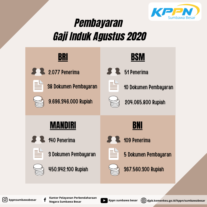 KPPN Sumbawa Besar - Pada hari Kamis tanggal 23 Juli 2020, KPPN Sumbawa Besar telah menyelesaikan penerbitan SP2D Gaji Induk Bulan Agustus 2020, hal ini tidak lepas dari kerjasama yang baik dari satuan kerja lingkup pembayaran KPPN Sumbawa Besar yang telah menyampaikan SPM Gaji Induk Bulan Agustus tepat waktu sebelum tanggal 15 Juli 2020. KPPN Sumbawa Besar mengucapkan terima kasih kepada #mitra101 atas kerjasamanya.